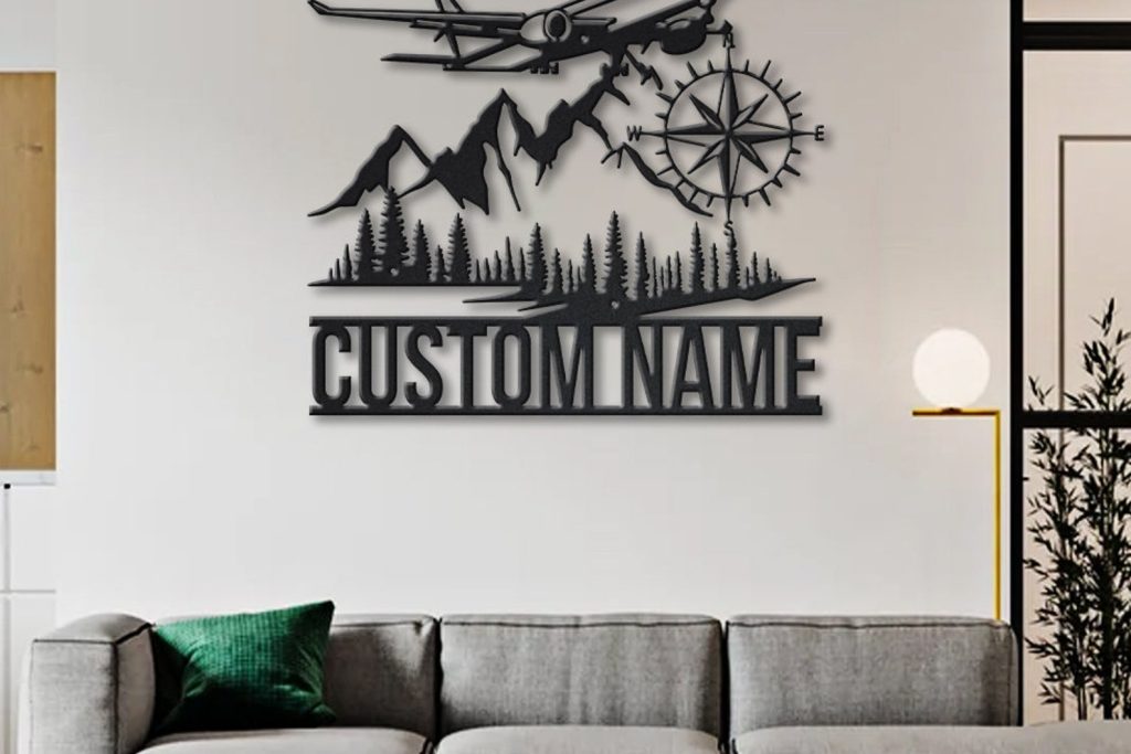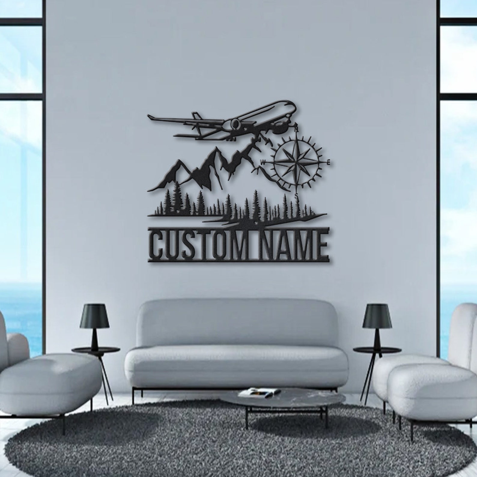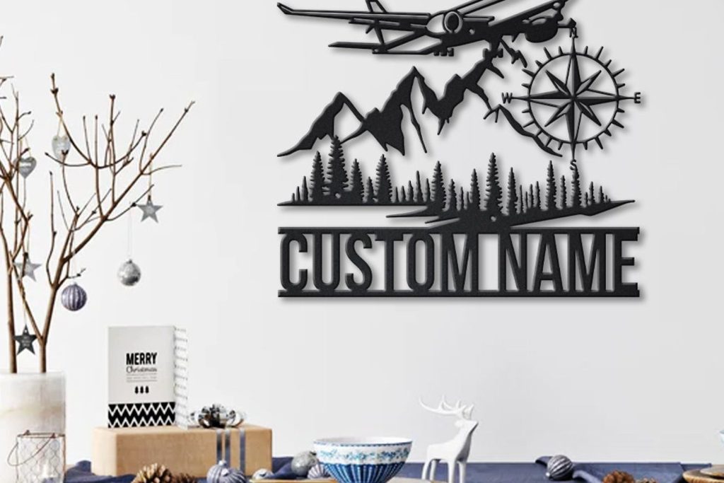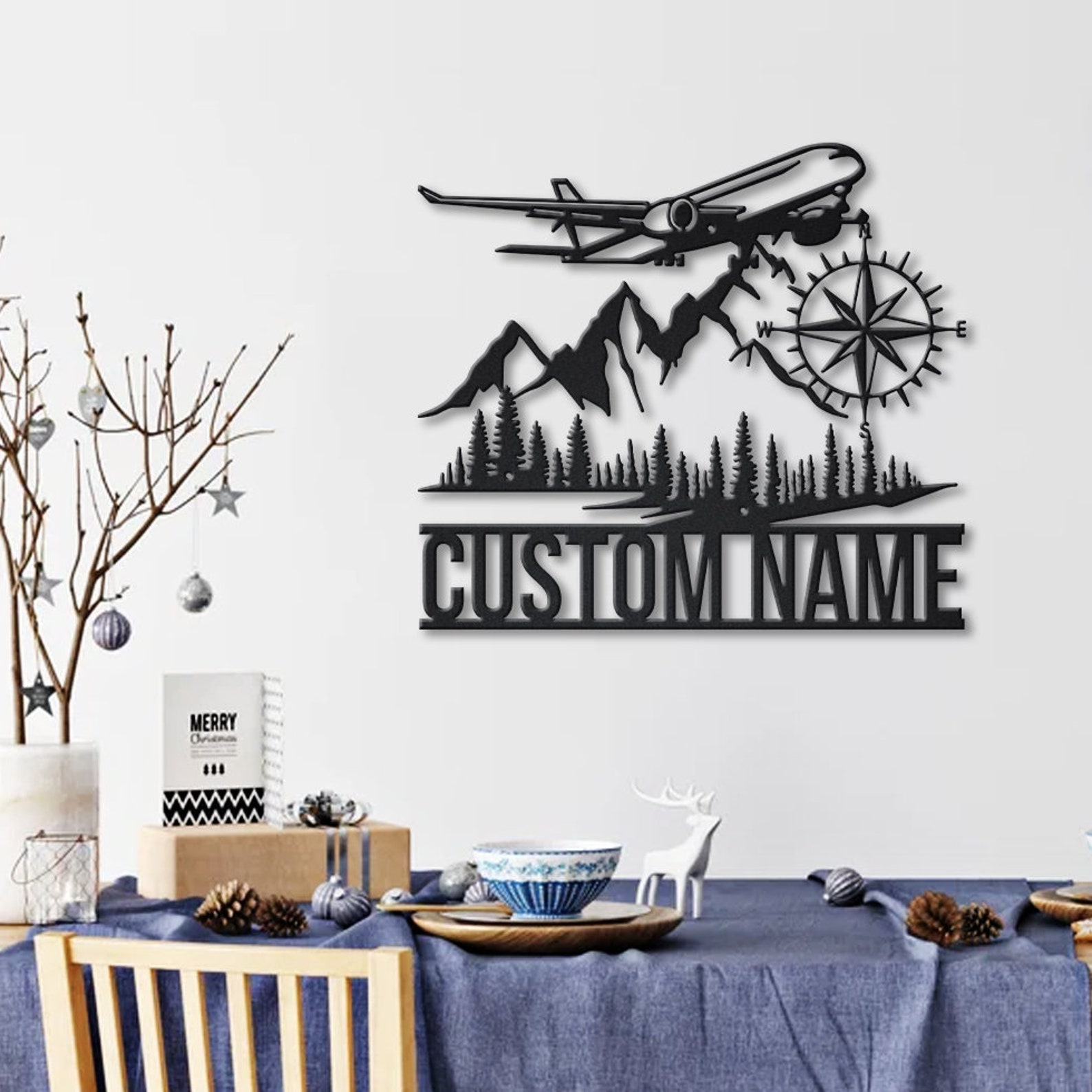 Custom Airplane Forest Metal Sign with LED V3 – Wall Decor