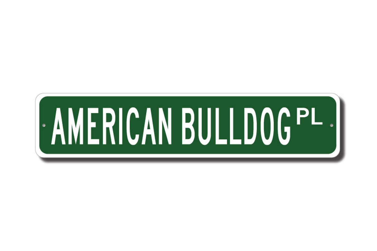 American Bulldog Lovers, check out this awesome street sign! This will make the perfect piece for any American Bulldog lover or American Bulldog cave. Made of premium aluminum it will stand the test of time. This sign will look great in any room, garage, barn or office! Get this sign for your favorite friend that loves an American Bulldog!