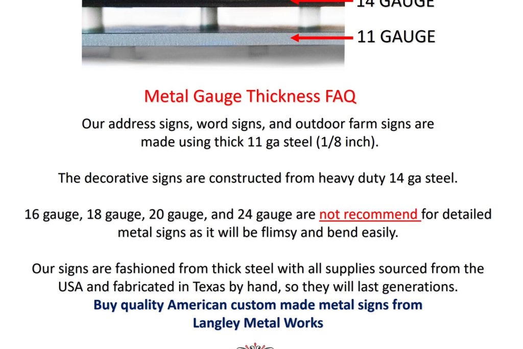 Langley Metal Works personalized signs are made entirely in our family owned and operated shop in rural Texas!