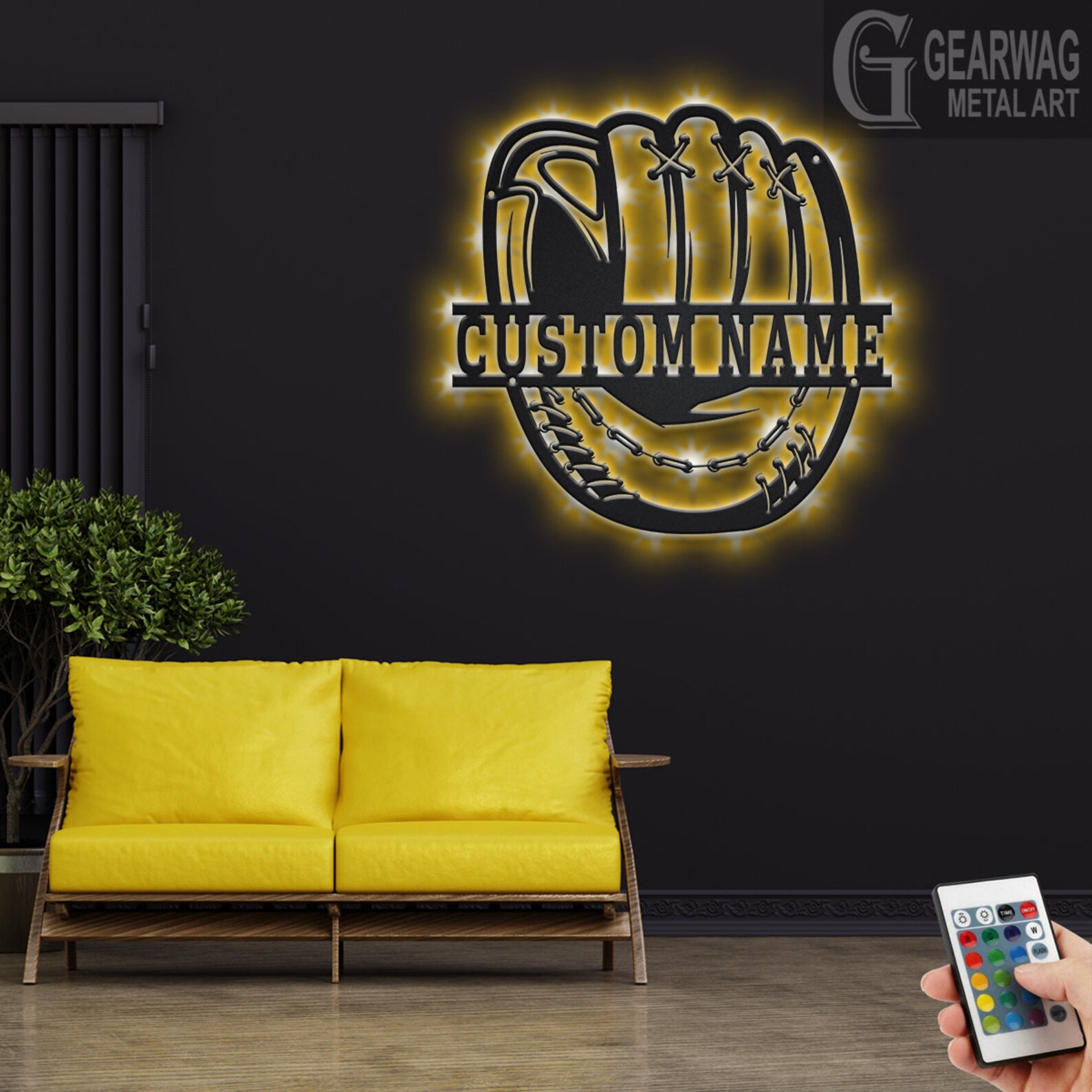 Custom Baseball Glove Metal Art with LED Light