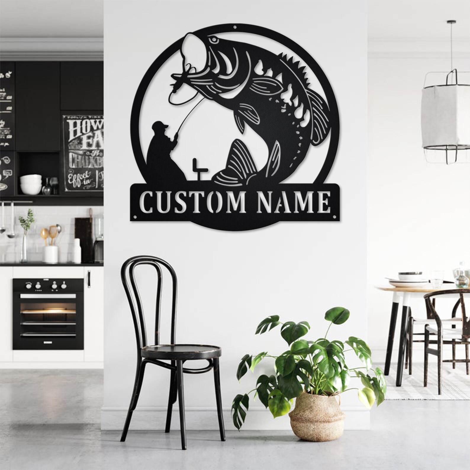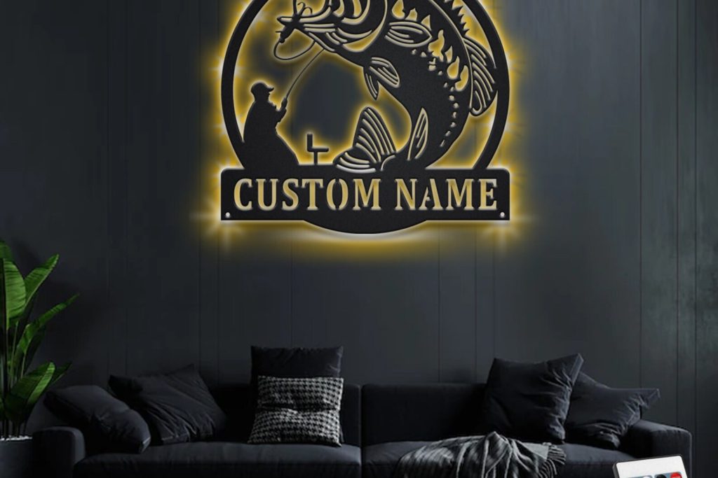 Custom Bass Fishing Metal Sign with LED – Fisher Room Decor