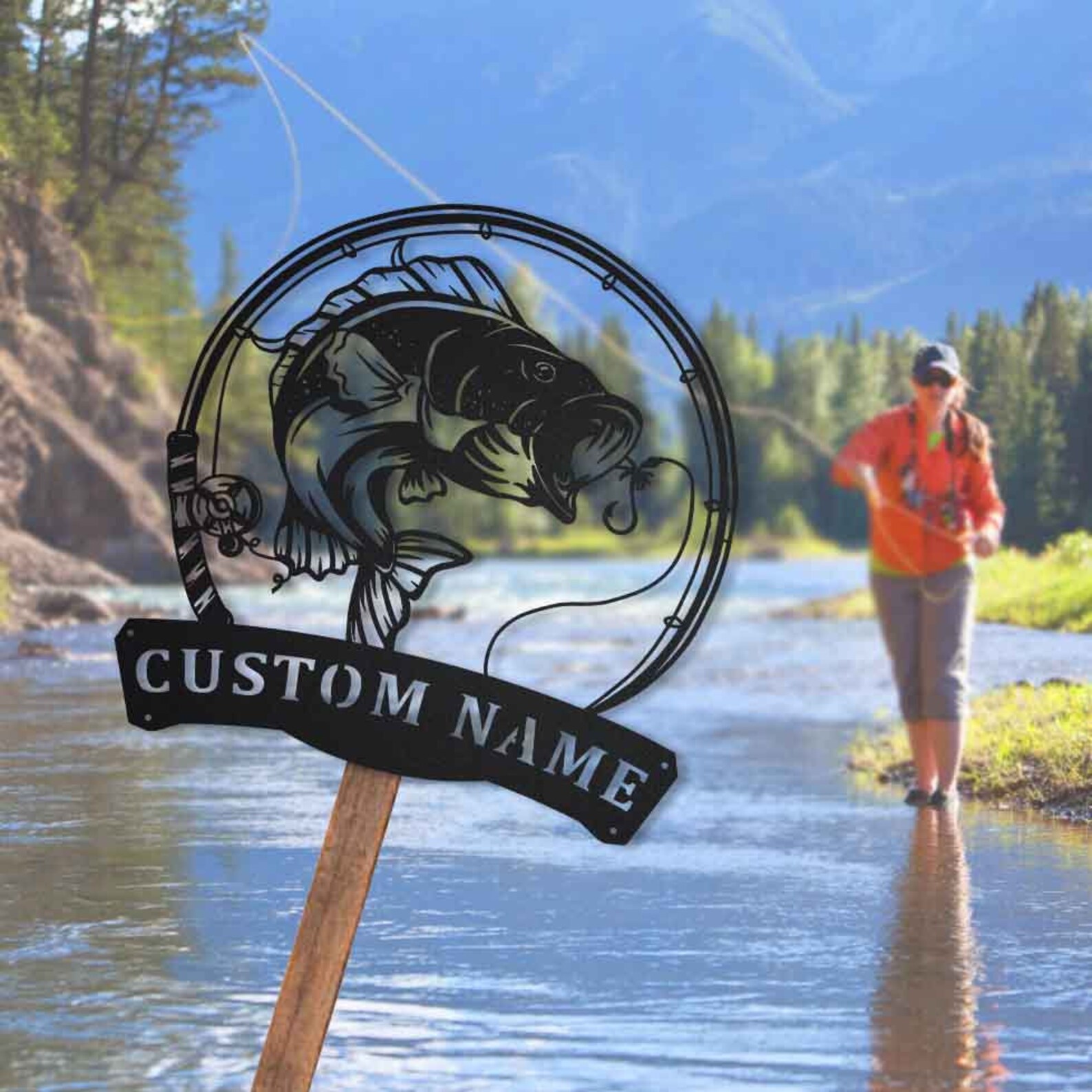 Be the first to review “Custom Bass Fishing Metal Sign with Pole”
