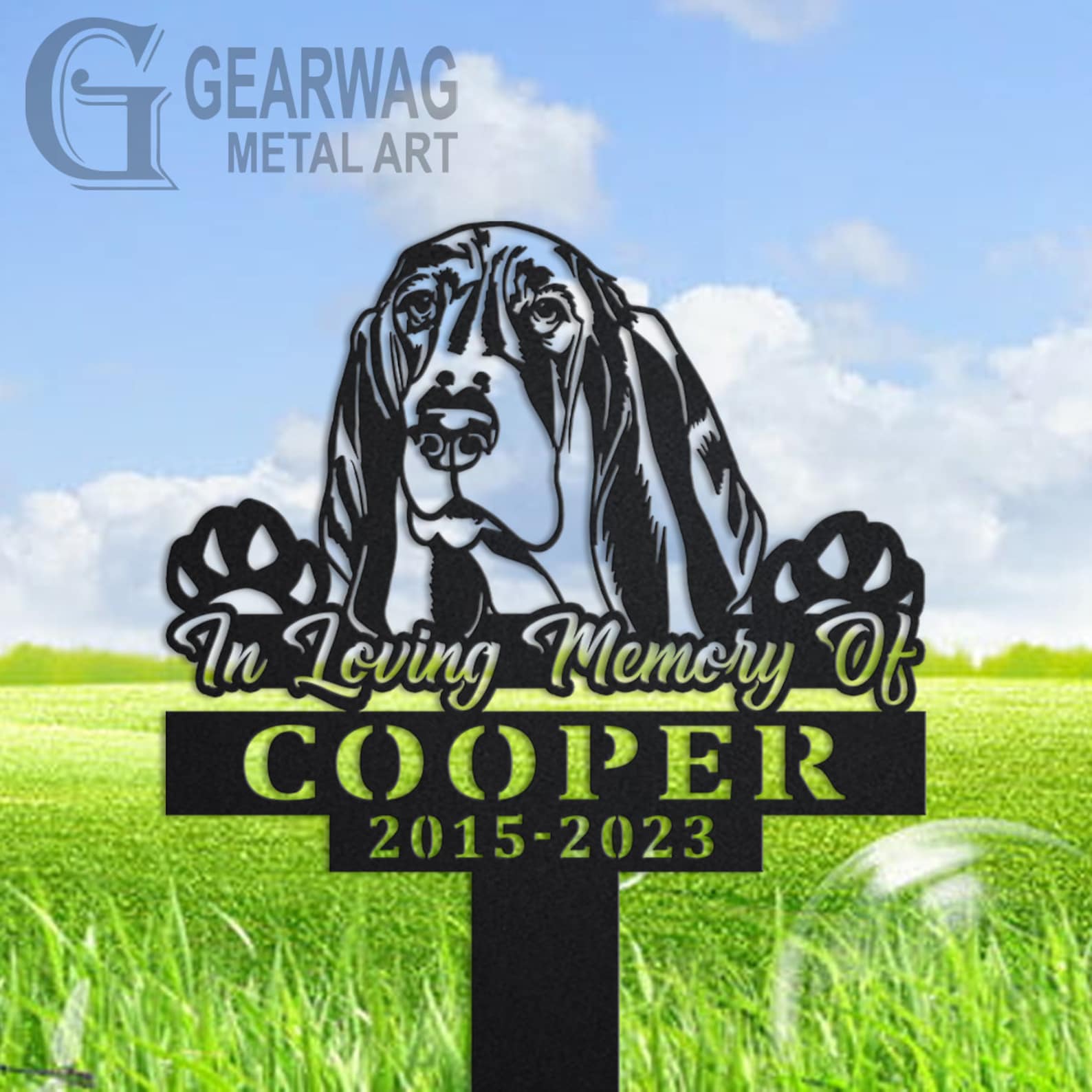 Custom Basset Hound Dog Memorial Stake: Sympathy Sign