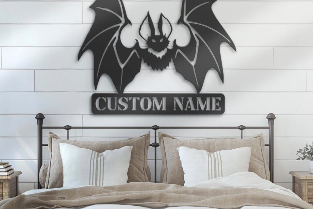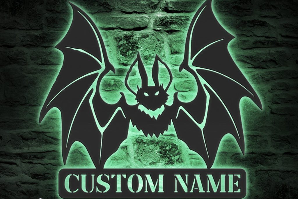 Custom Bat Metal Wall Art – LED Light, Personalized Halloween Bat Sign