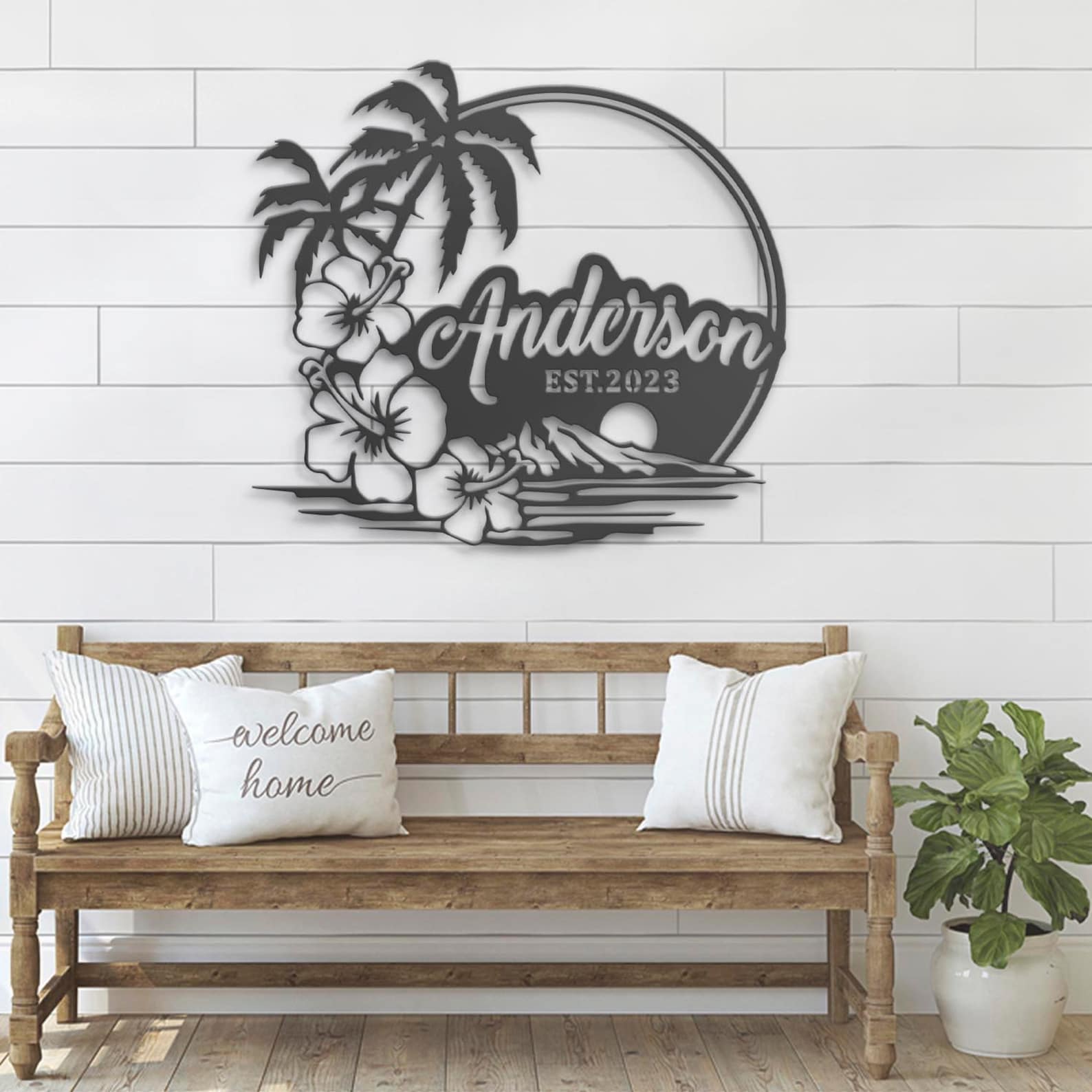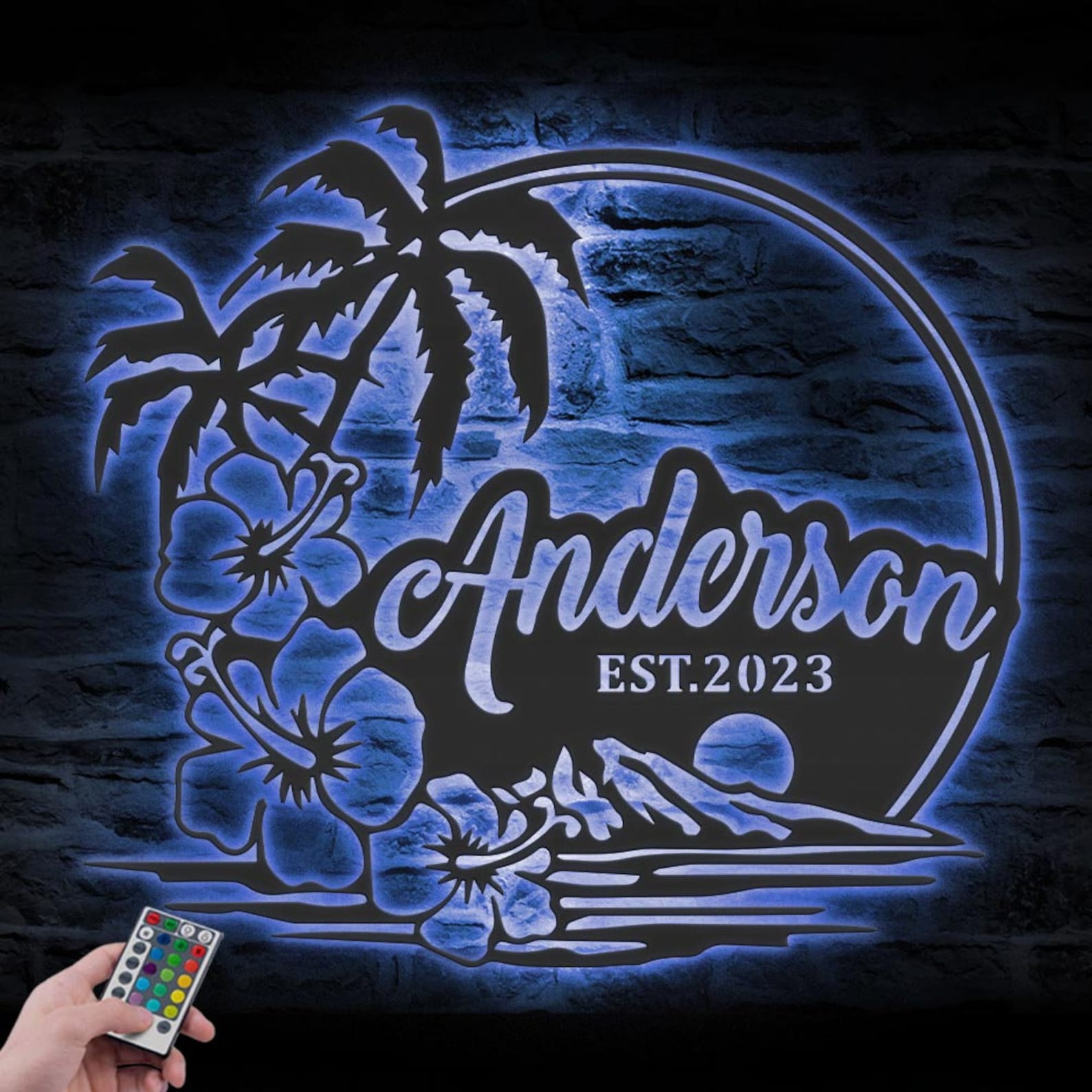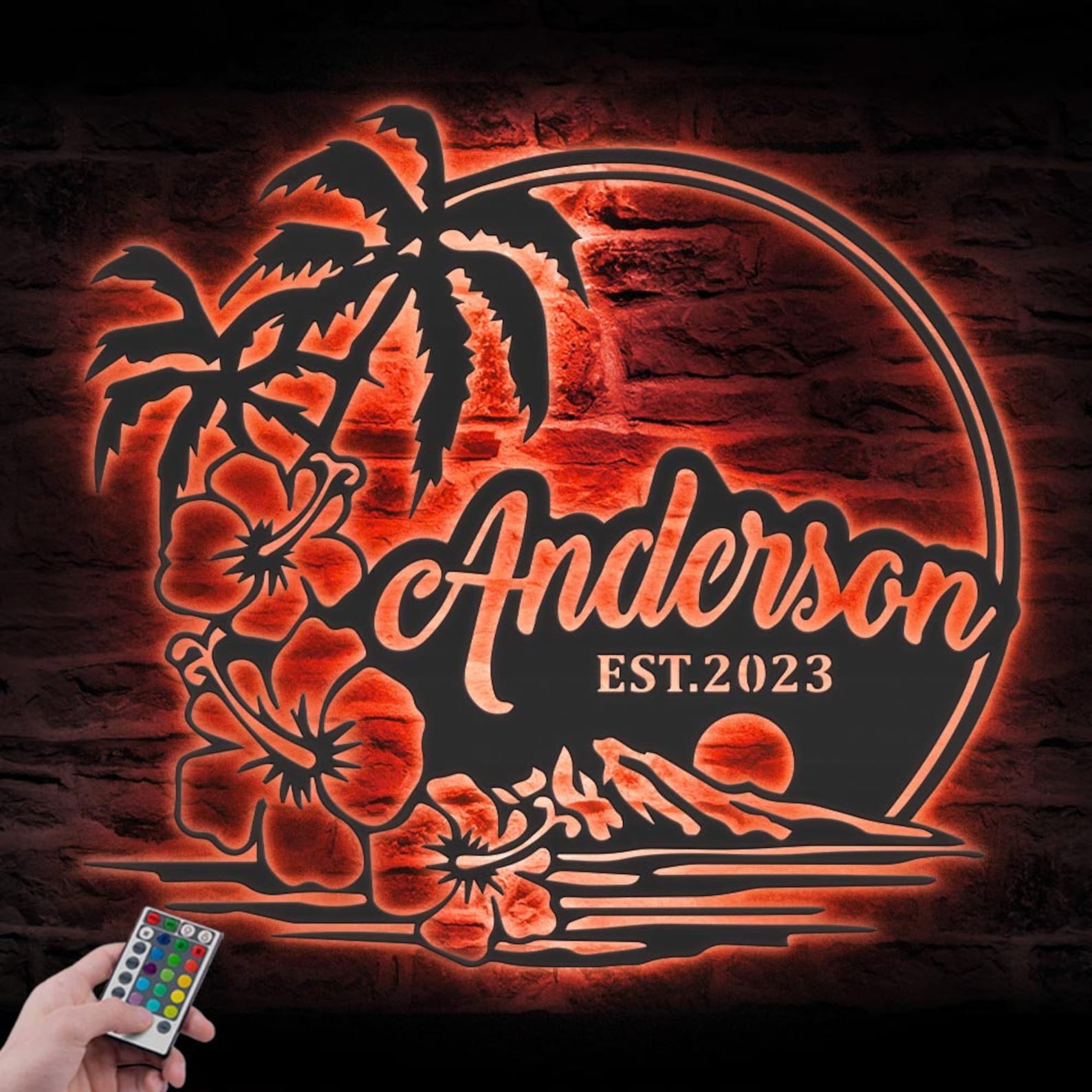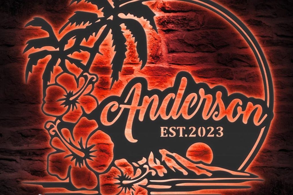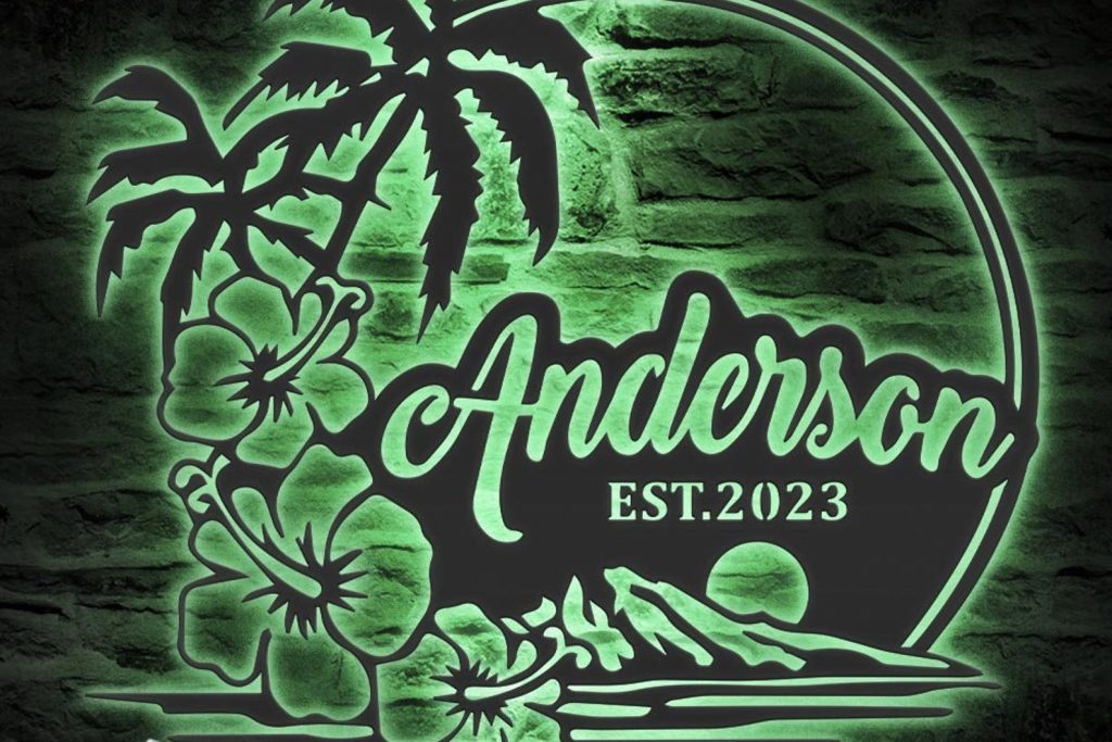 Be the first to review “Custom Beach House Hawaiian Flower Scene Metal Wall Art – LED Light Sign”
