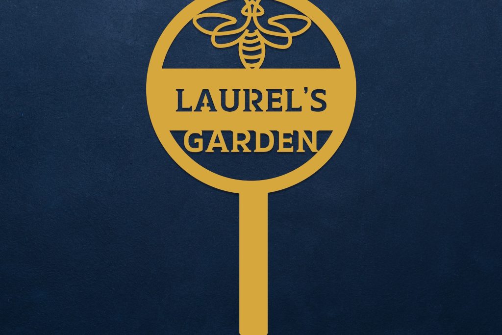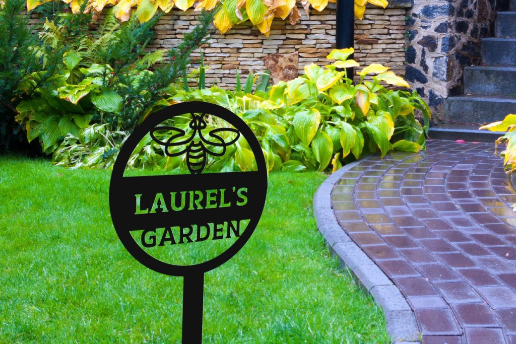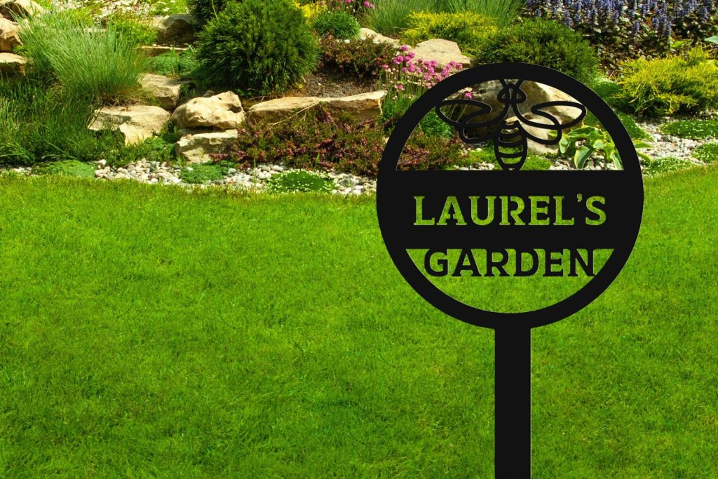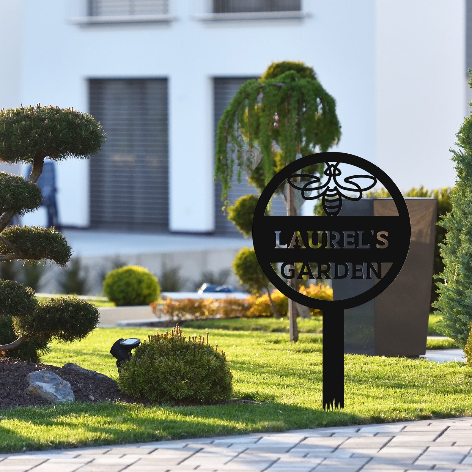 Custom Bee Garden Metal Sign with Stakes, Minimalist Design Garden Decor, Personalized Garden Name Sign, Bee Decor, Metal Yard Art, Unique