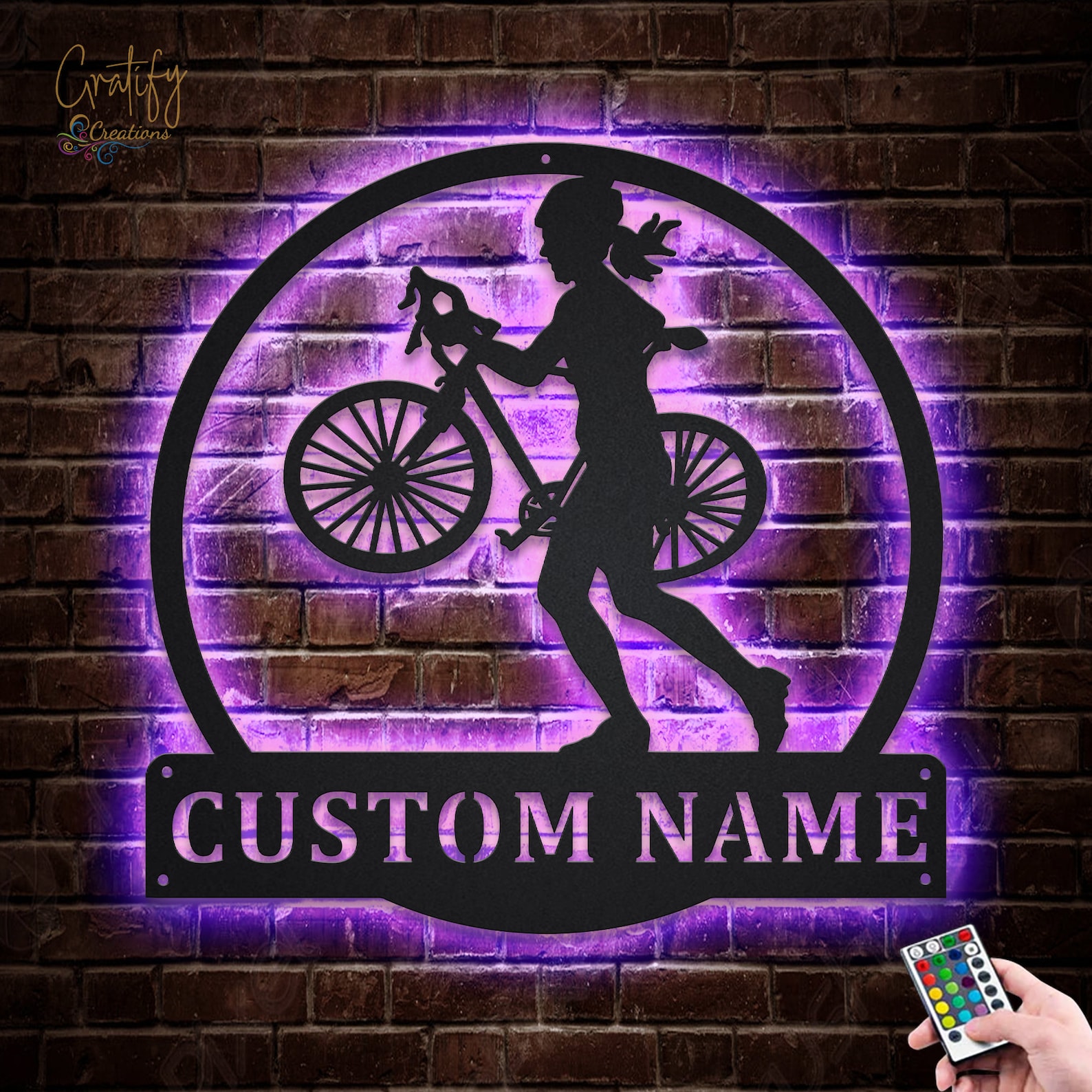 Be the first to review “Custom Bicycle Metal Sign with LED V6 – Cyclist Wall Hanging”