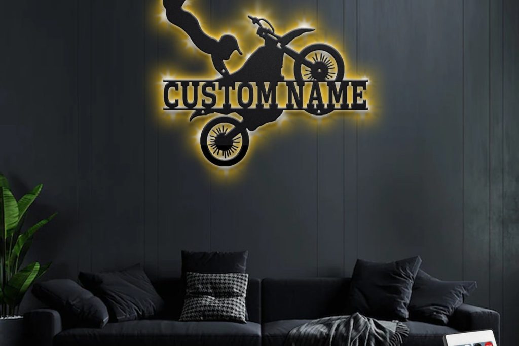 Be the first to review “Custom Biker Metal Art with LED Light”