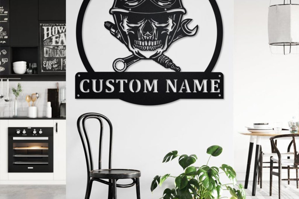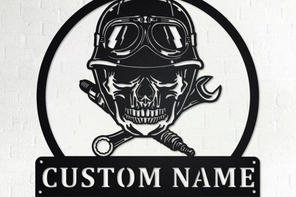 Be the first to review “Custom Biker Skull Sign, Personalized Decor”