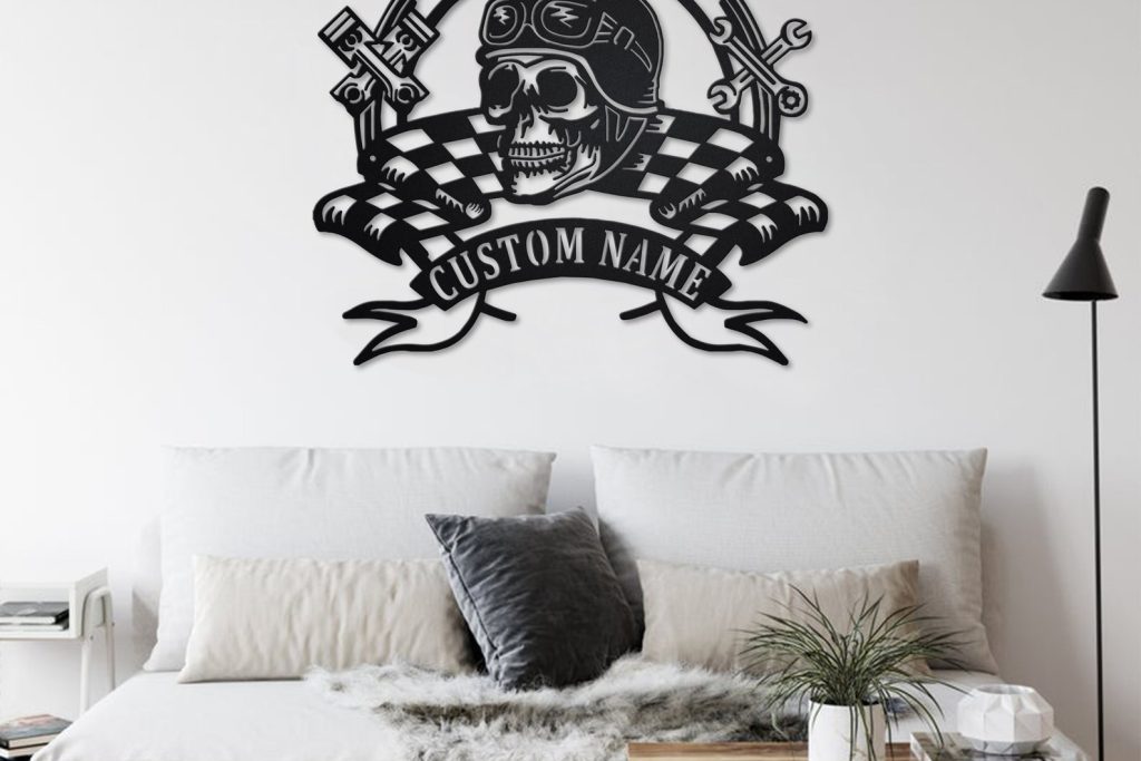 Be the first to review “Custom Biker With Skull Metal Wall Art – Personalized Bike Name Sign”