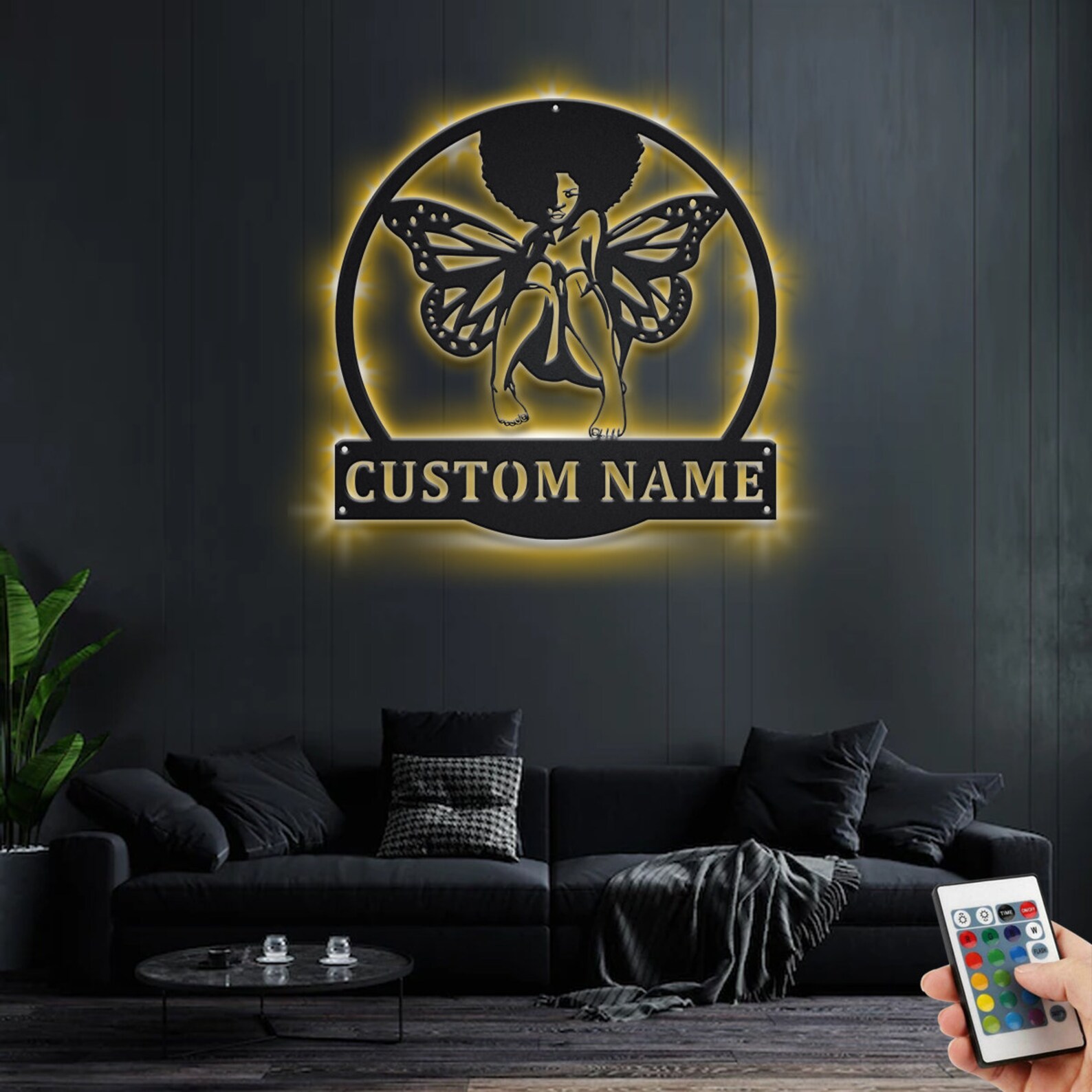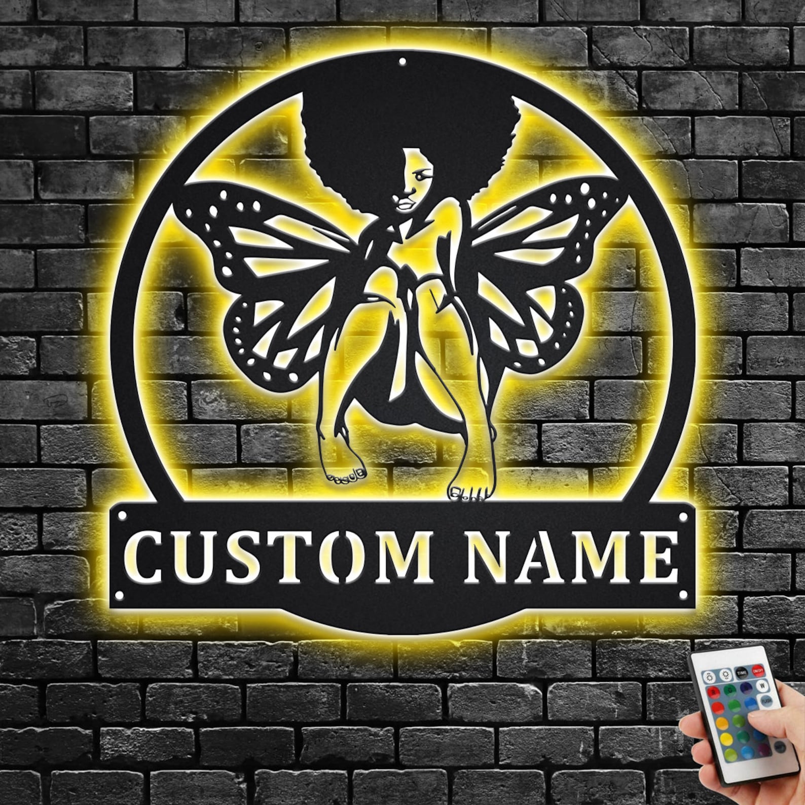 Custom Black Girl Metal Sign with LED – Personalized Decor