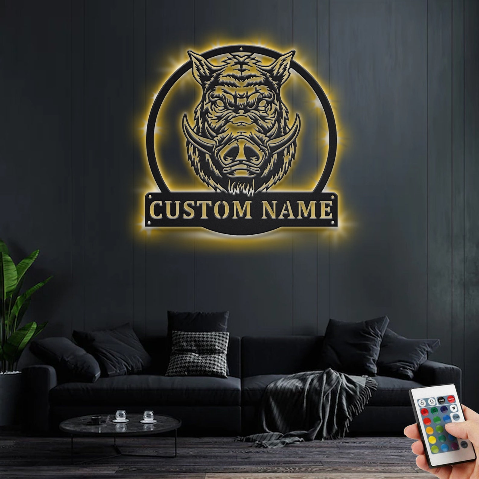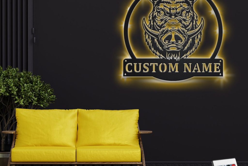 Be the first to review “Custom Boar Head Metal Art with LED Light”