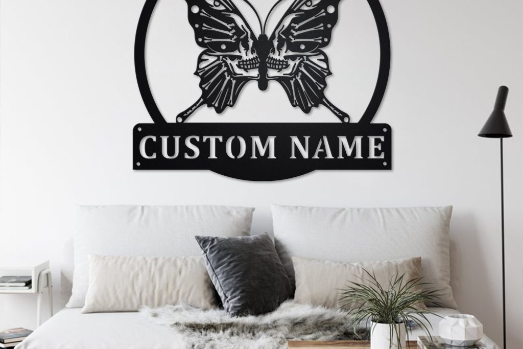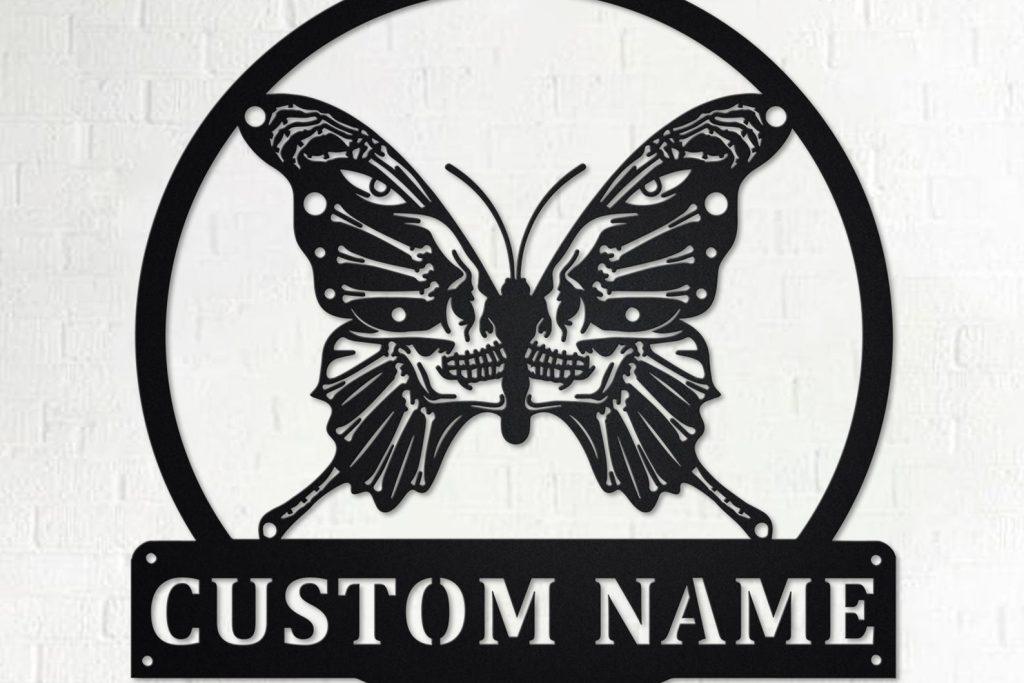 Custom Butterfly Skull Metal Art – Gothic Wall Decor