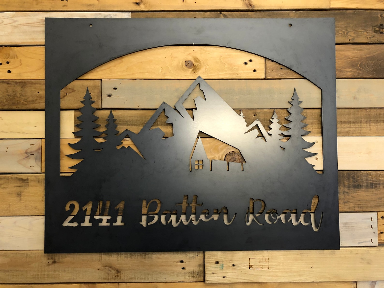 This customized metal cabin in the mountains sign makes for the perfect personalized housewarming, cabin, cottage or outdoor enthusiast gift! This sign will be customized with your name and address. Once ordered we will design your piece and send to your for your approval before cutting.