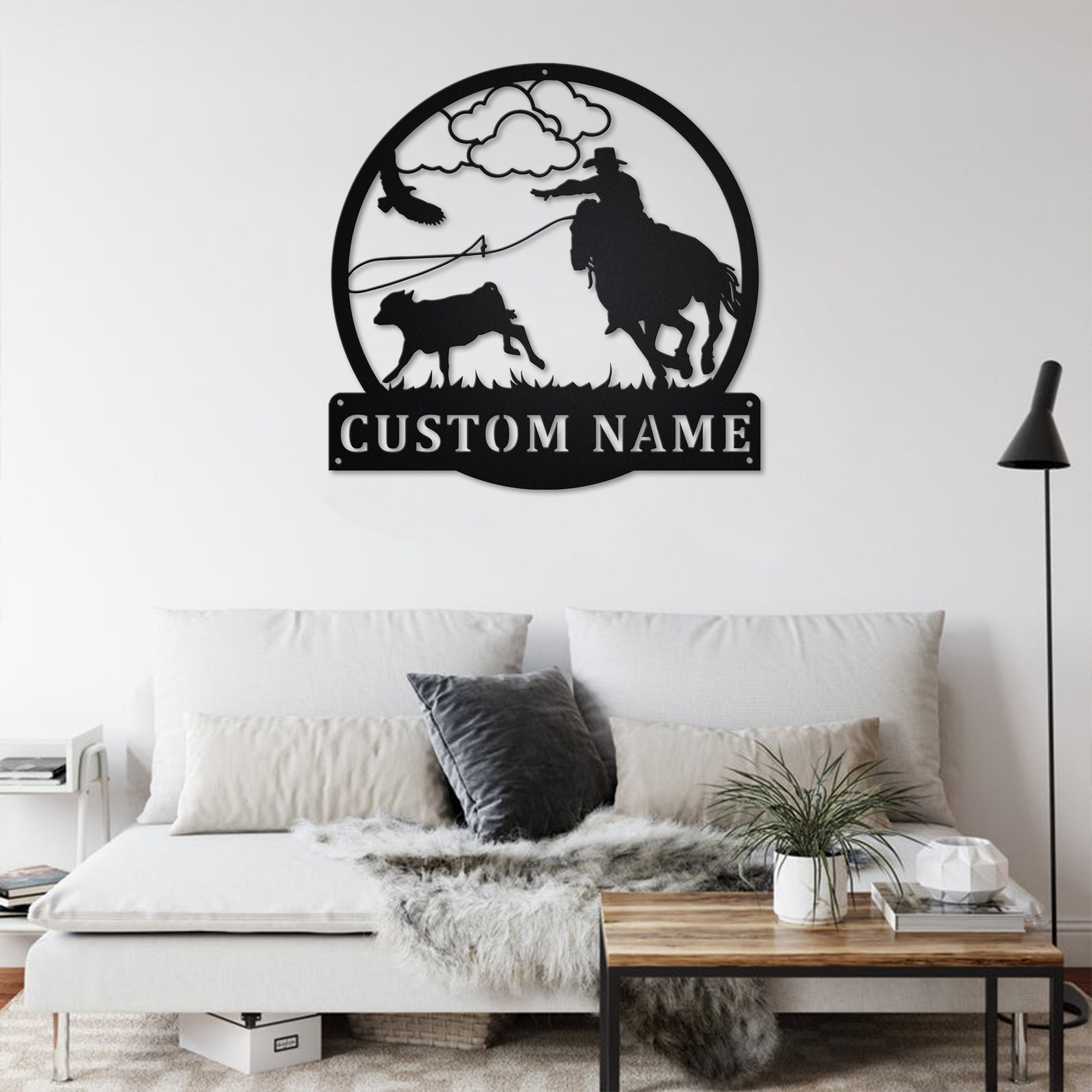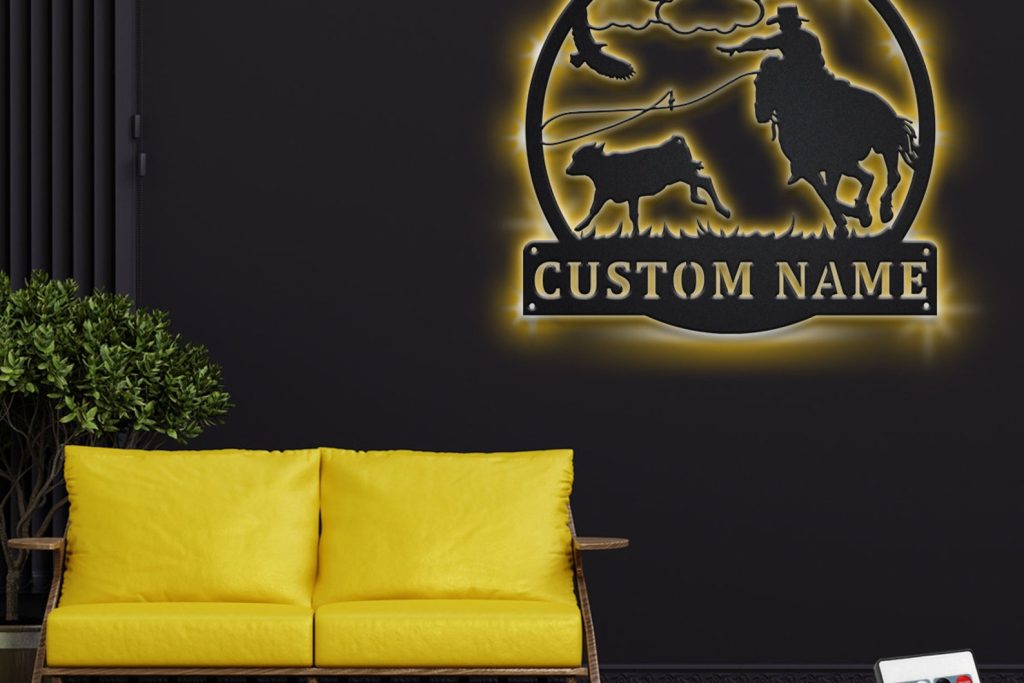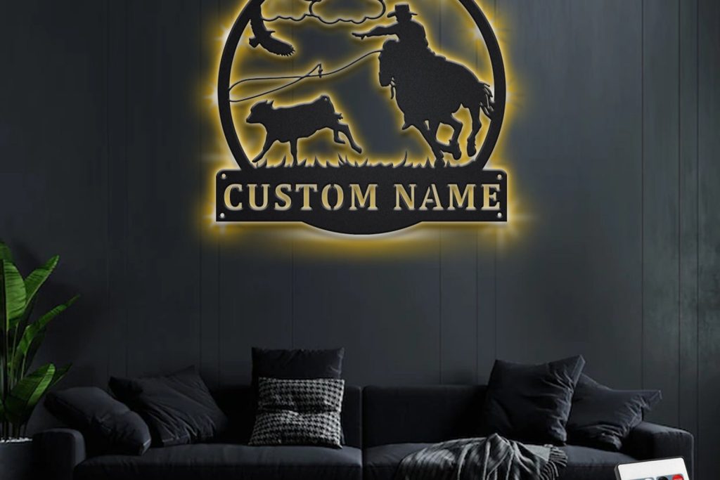 Be the first to review “Custom Calf Roping Metal Art with LED Light”
