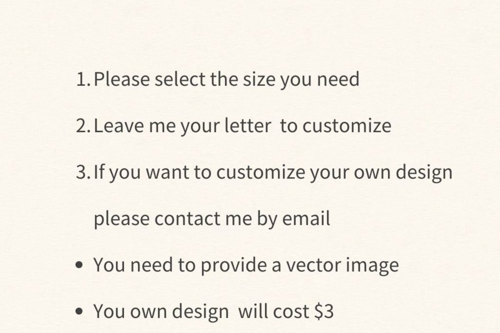 1.Name or text: your name or words need to be engraved or printed on the metal.For Monograms, please ensure that you fill in all of the appropriate info for each style design.