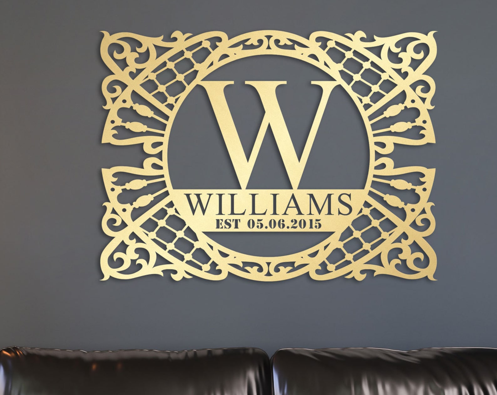 All of our signs are made using high quality 16-gauge metal, laser cut and powder coated in your custom color to ensure your sign looks gorgeous and resists the elements to stand the test of time.