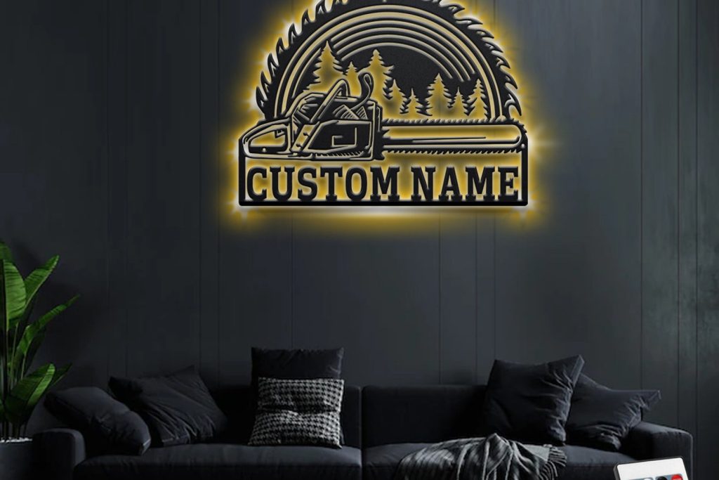 Custom Chainsaw Wood Metal Wall Art with LED Light
