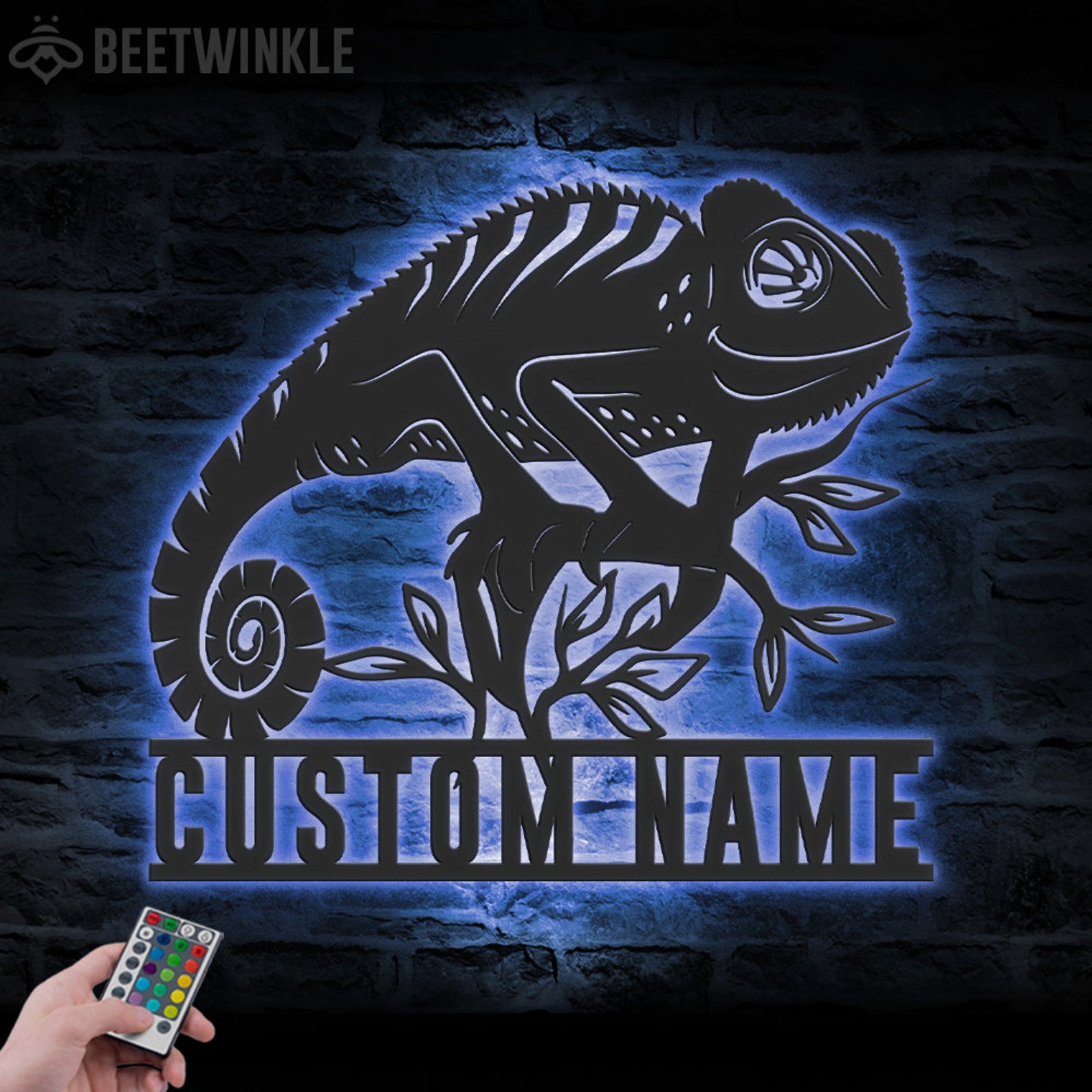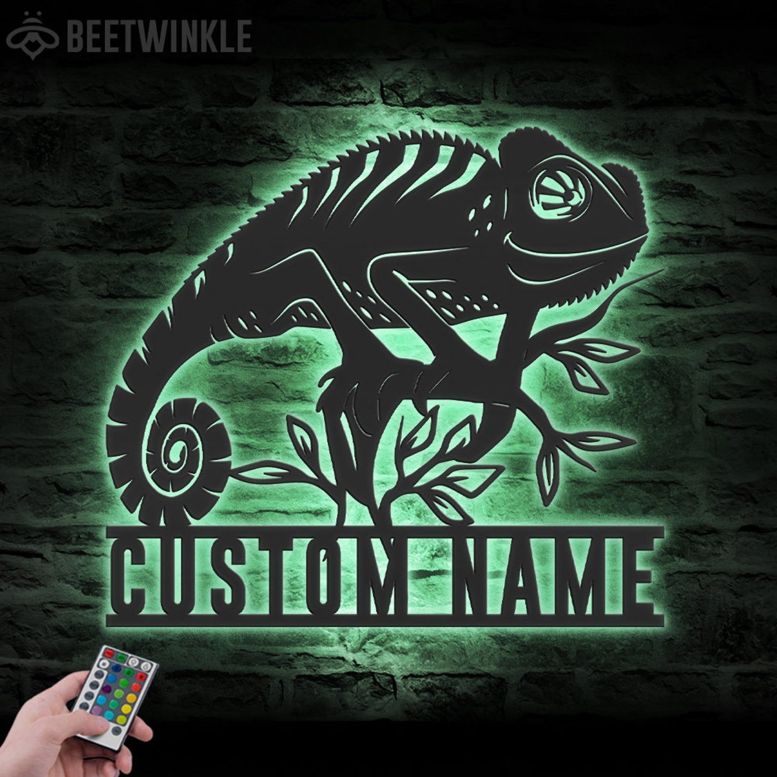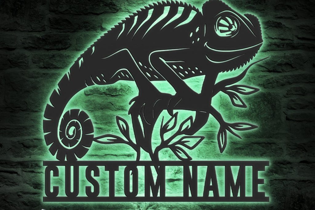 Custom Chameleon LED Metal Art – Nursery Decor Gift