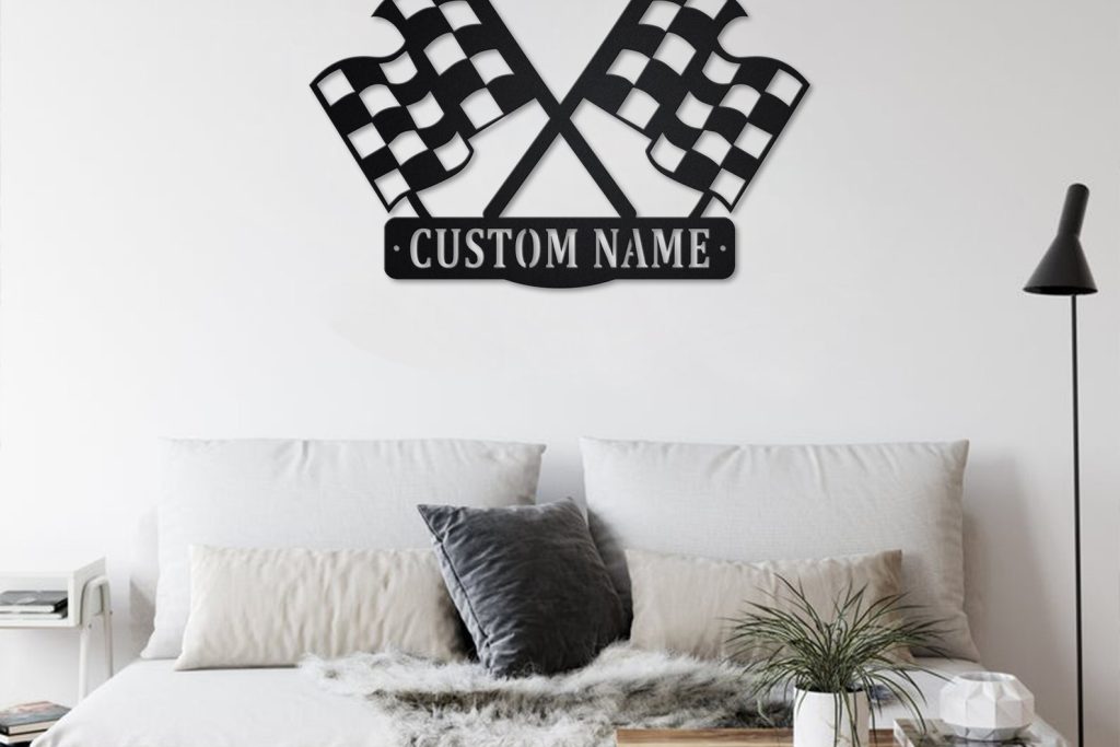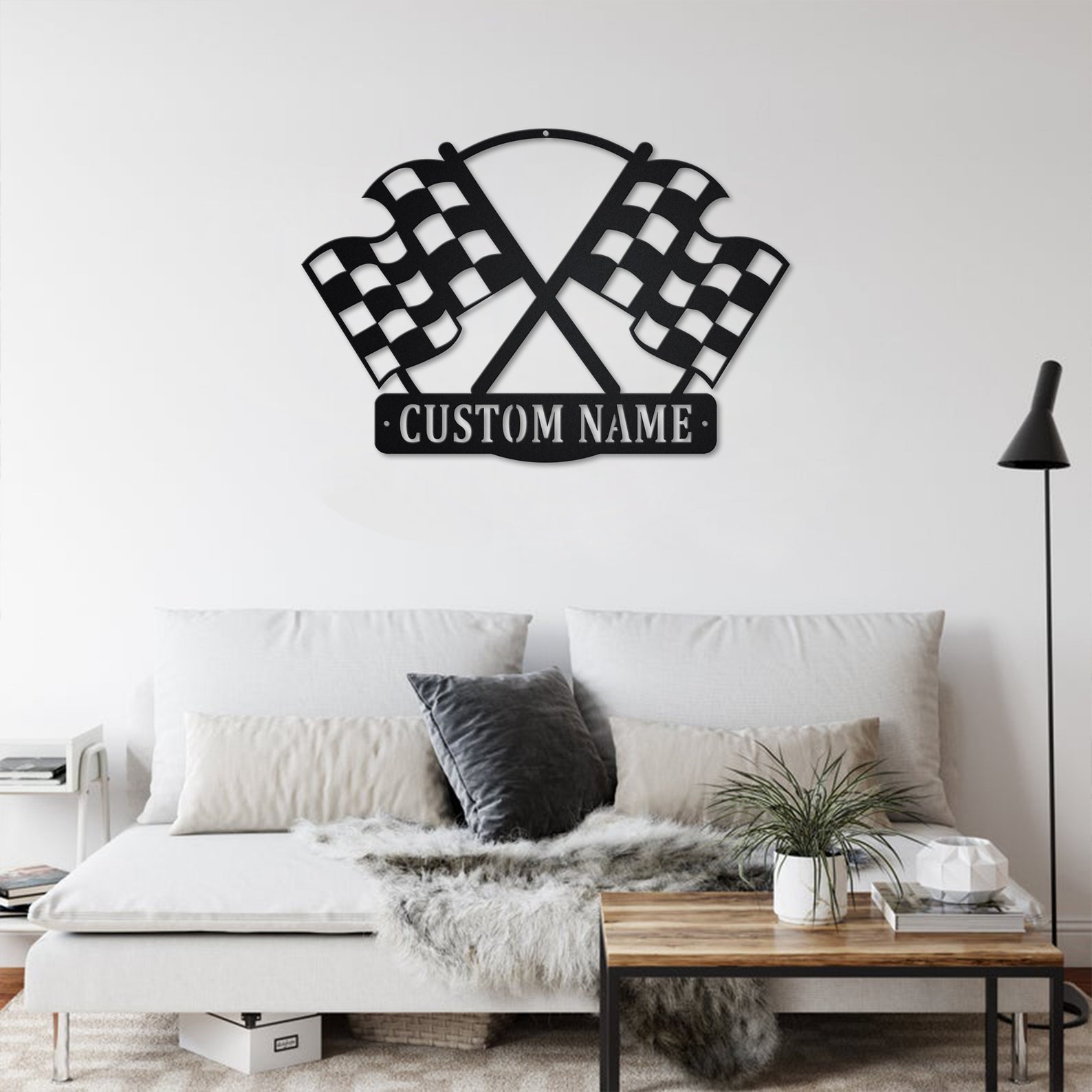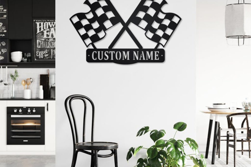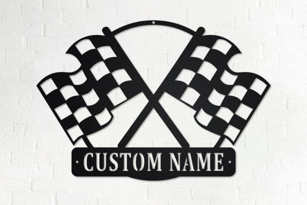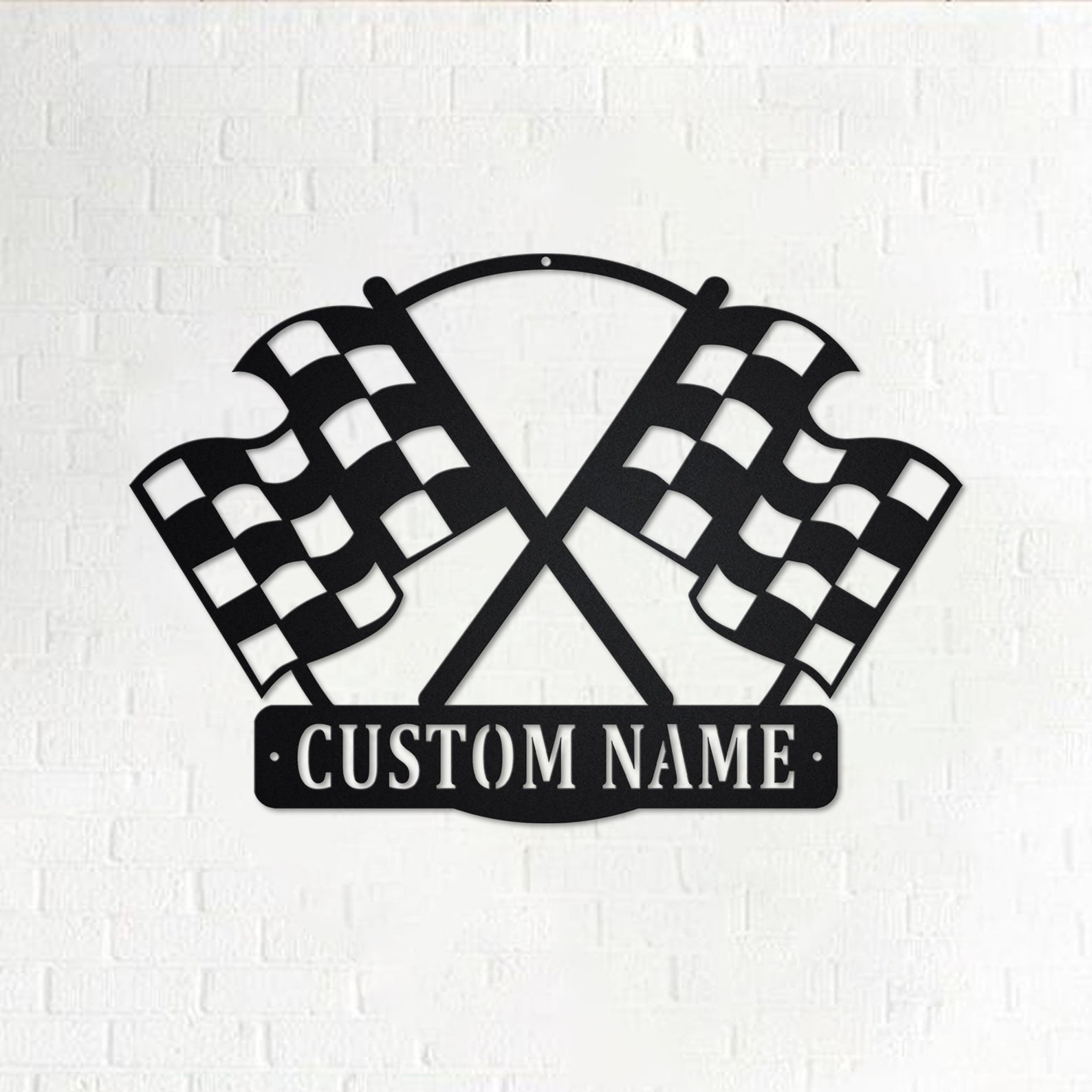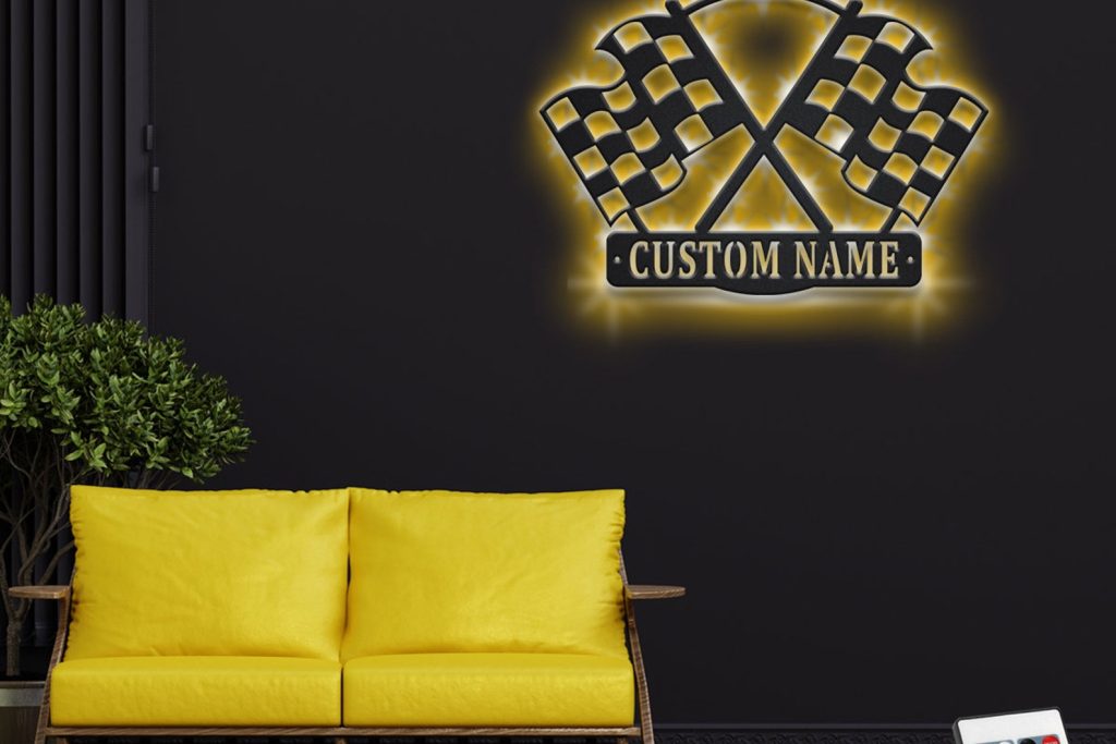 Be the first to review “Custom Checkered Racing Flag Metal Art with LED Light”