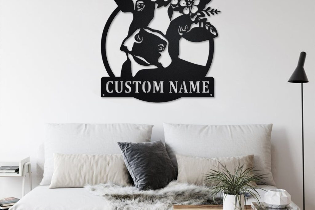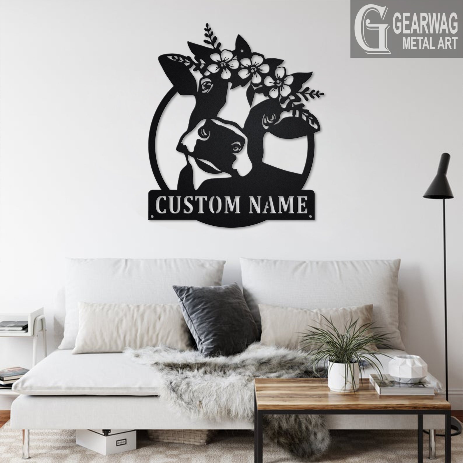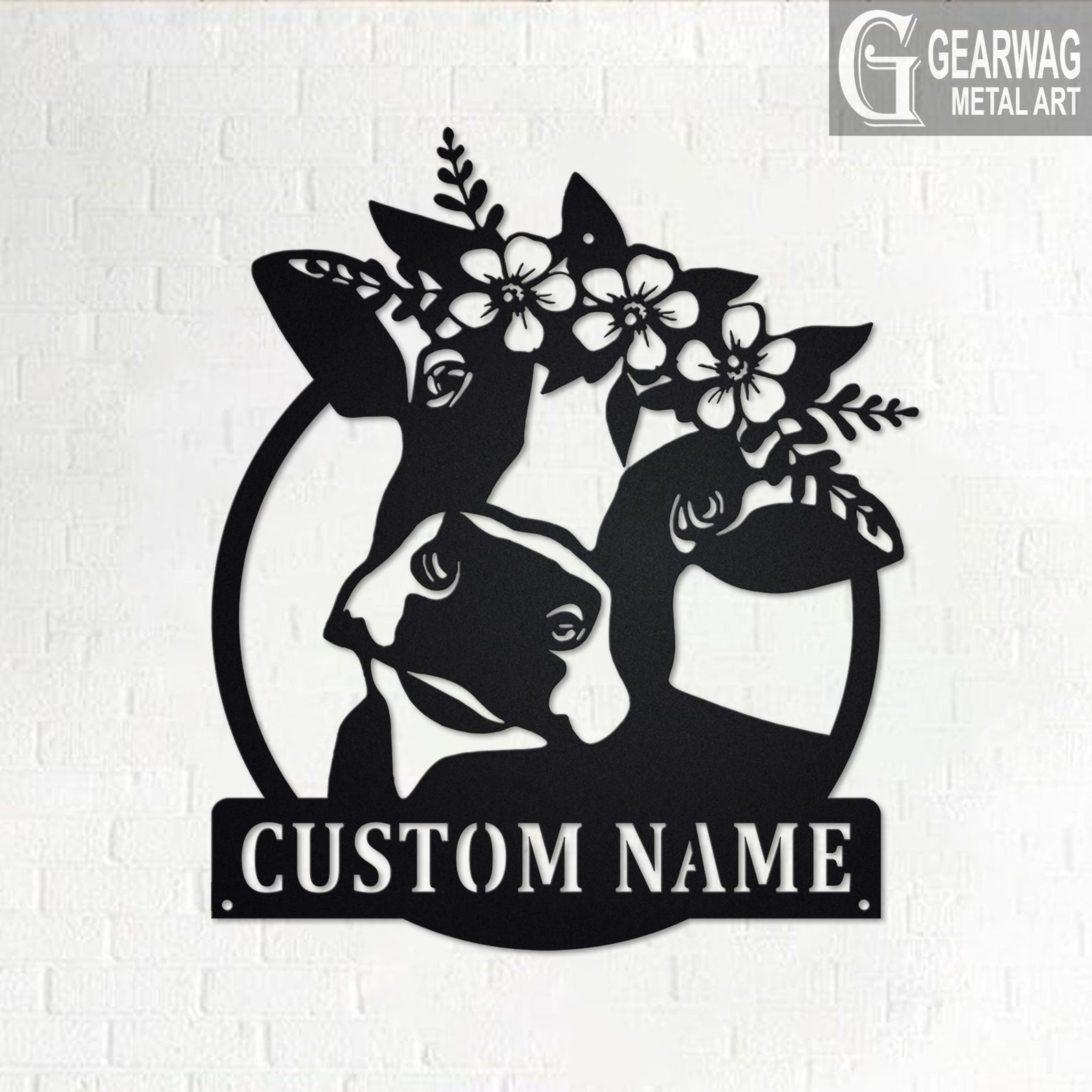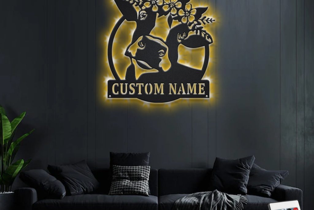 Custom Cow Floral Metal Sign with LED – Farm Room Decor