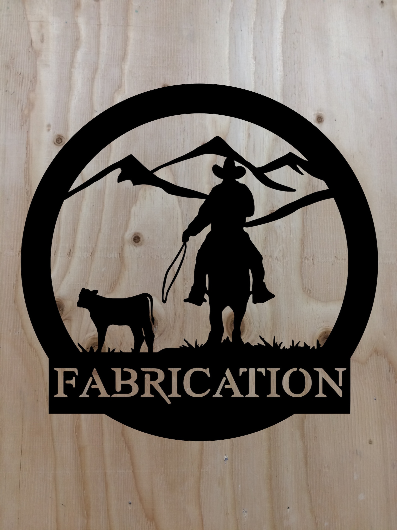 Made in the USA from 16 gauge steel. CNC plasma cut and hand finished. Powder coat for durability. More designs at our facebook page @rmfsigns Reed Machine and Fabrication LLC. Custom names and sizes available. Cowboy, Horse, Calf, Cattle Ranch, Mountains, Western wall decor.