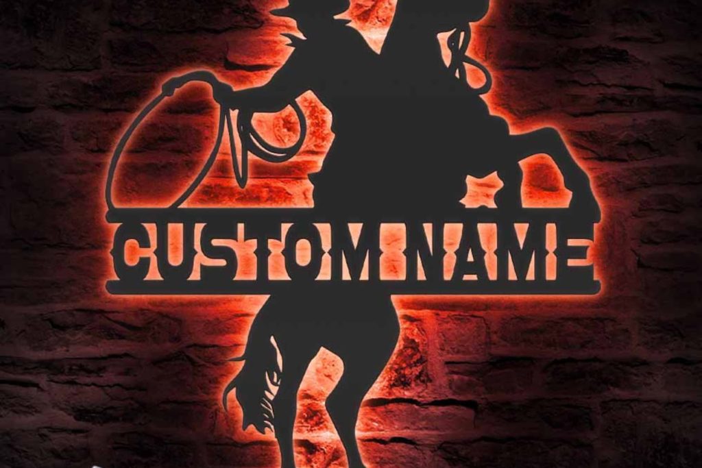 Be the first to review “Custom Cowboy Roping Metal Sign with LED – Rodeo Decor”