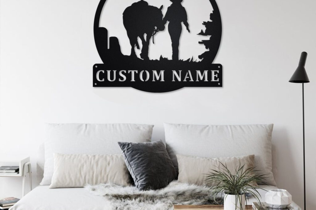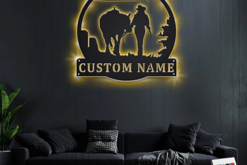 Custom Cowgirl & Horse Metal Sign with LED – Country Decor