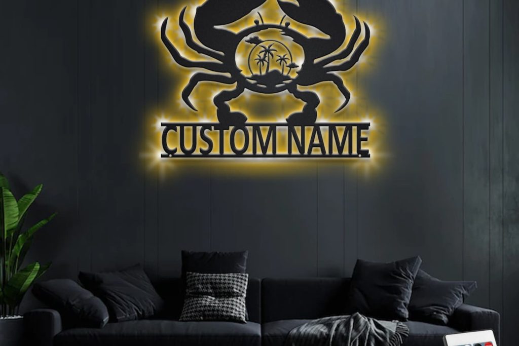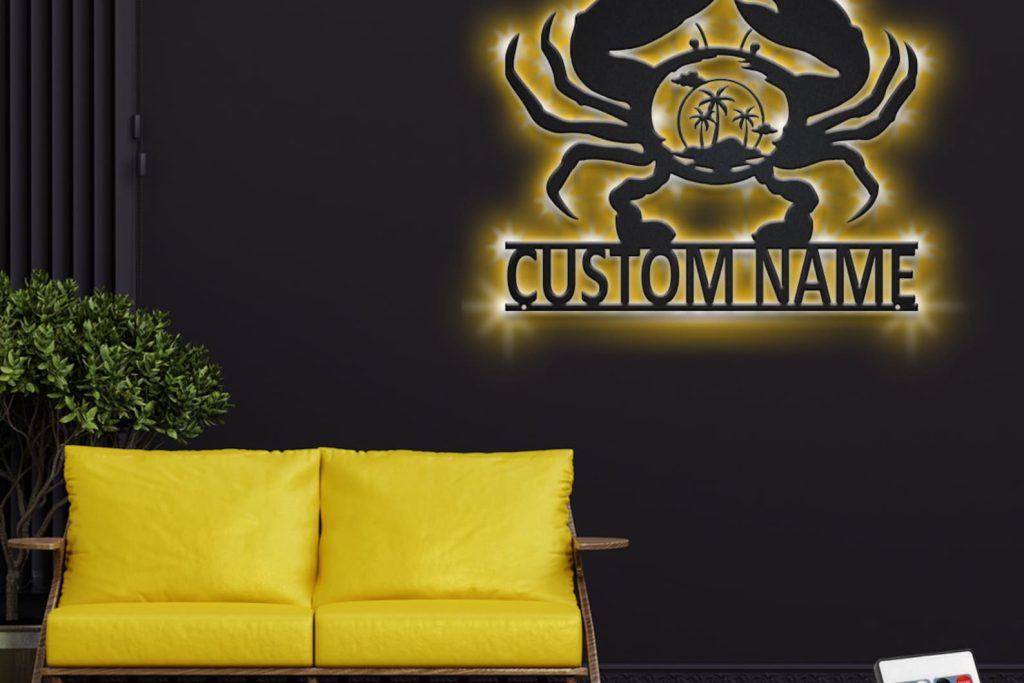 Custom Crab Beach Scene Metal Wall Art with LED Light