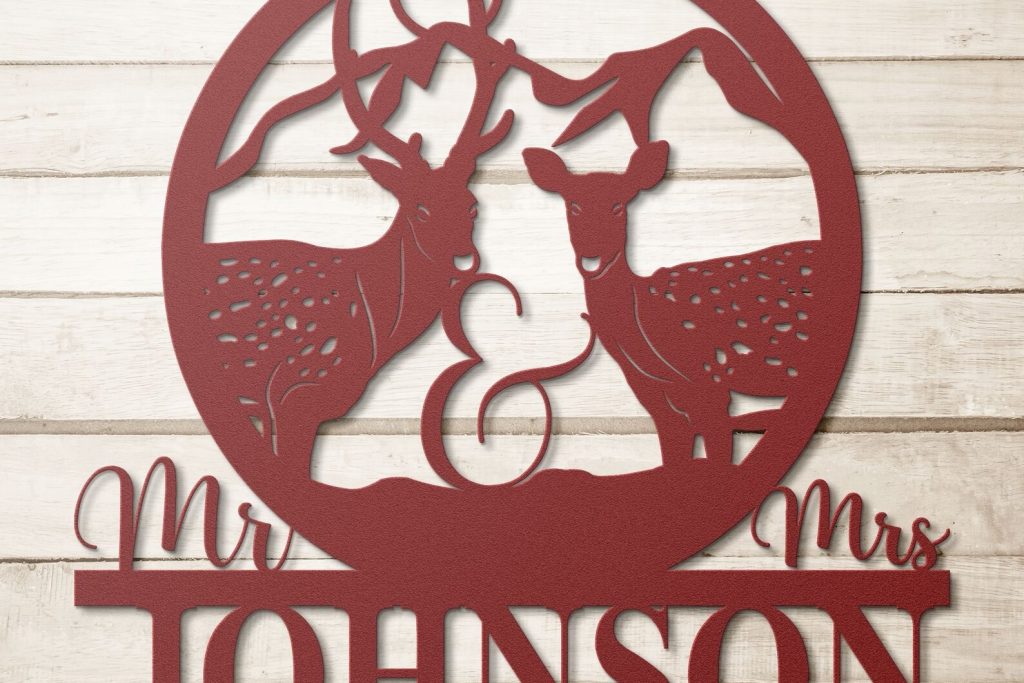 Be the first to review “Custom Deer Couples Monogram Metal Sign”
