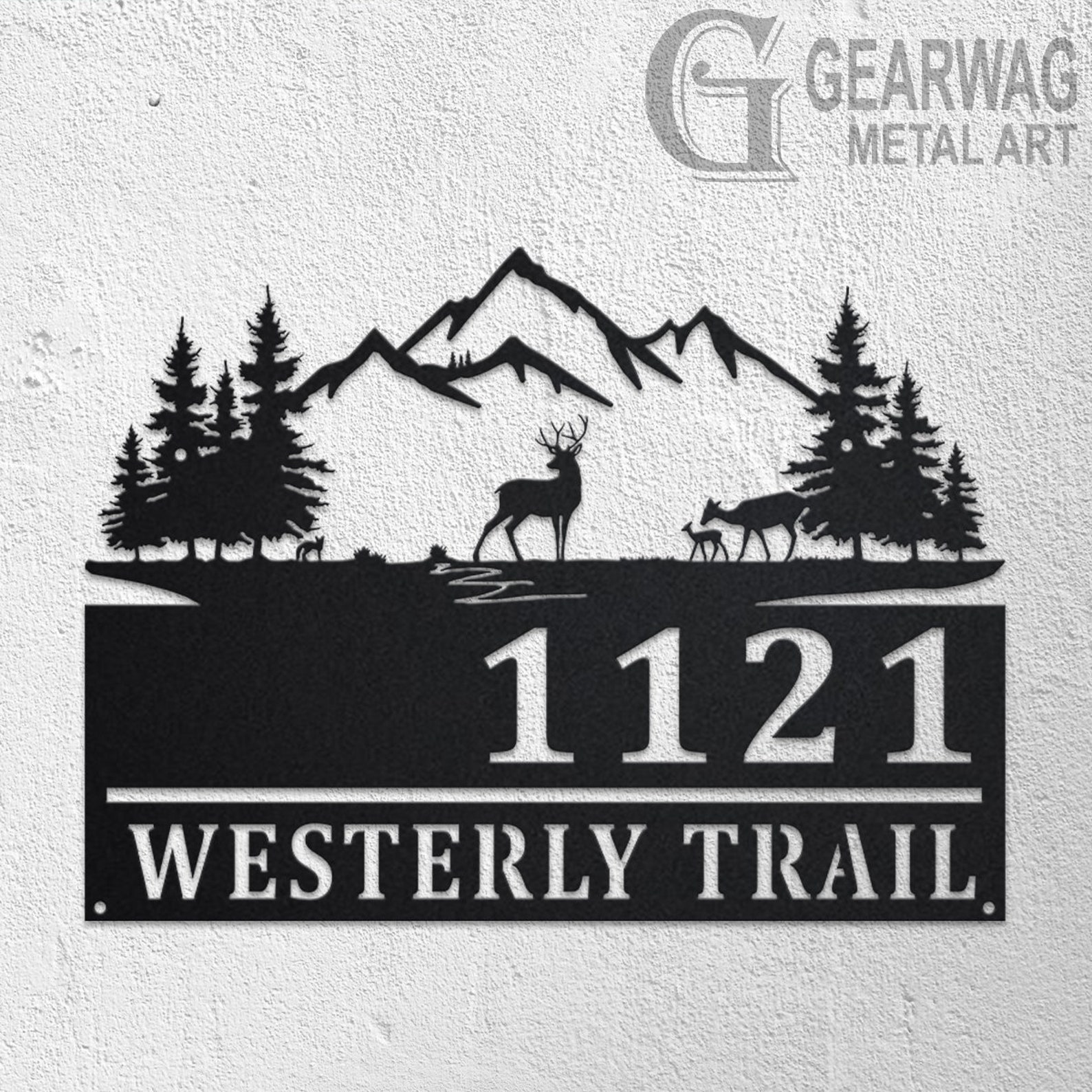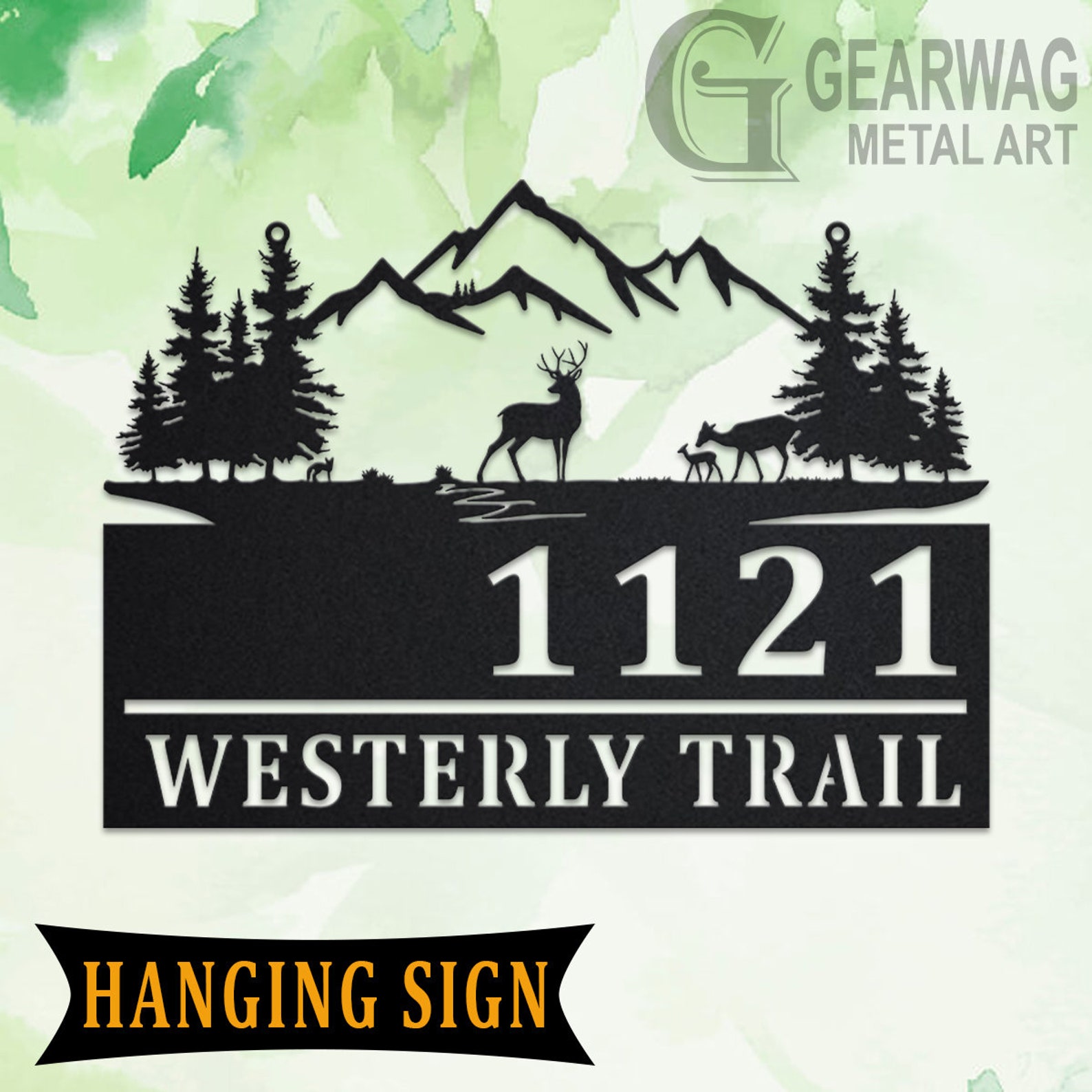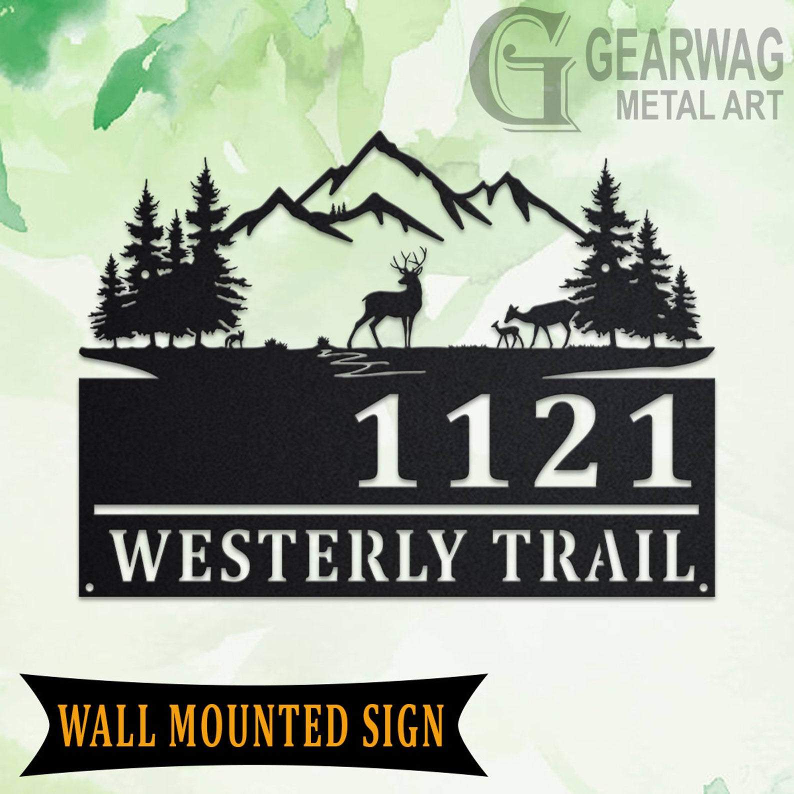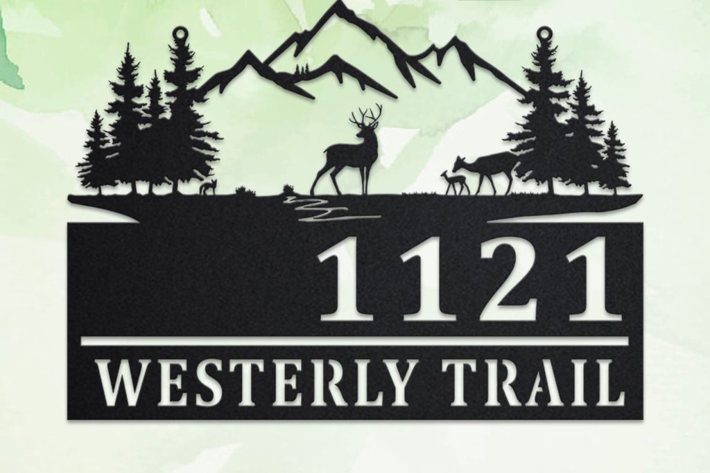Be the first to review “Custom Deer Family Mountain Metal Address Sign”