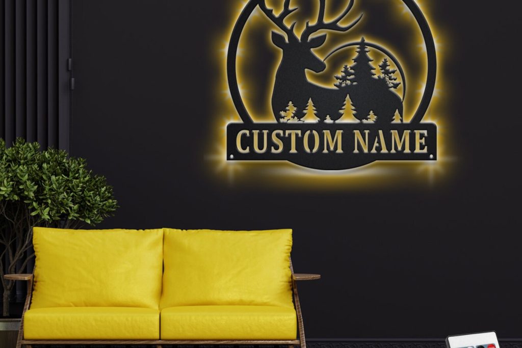 Custom Deer Head Metal Sign with LED – Room Decor