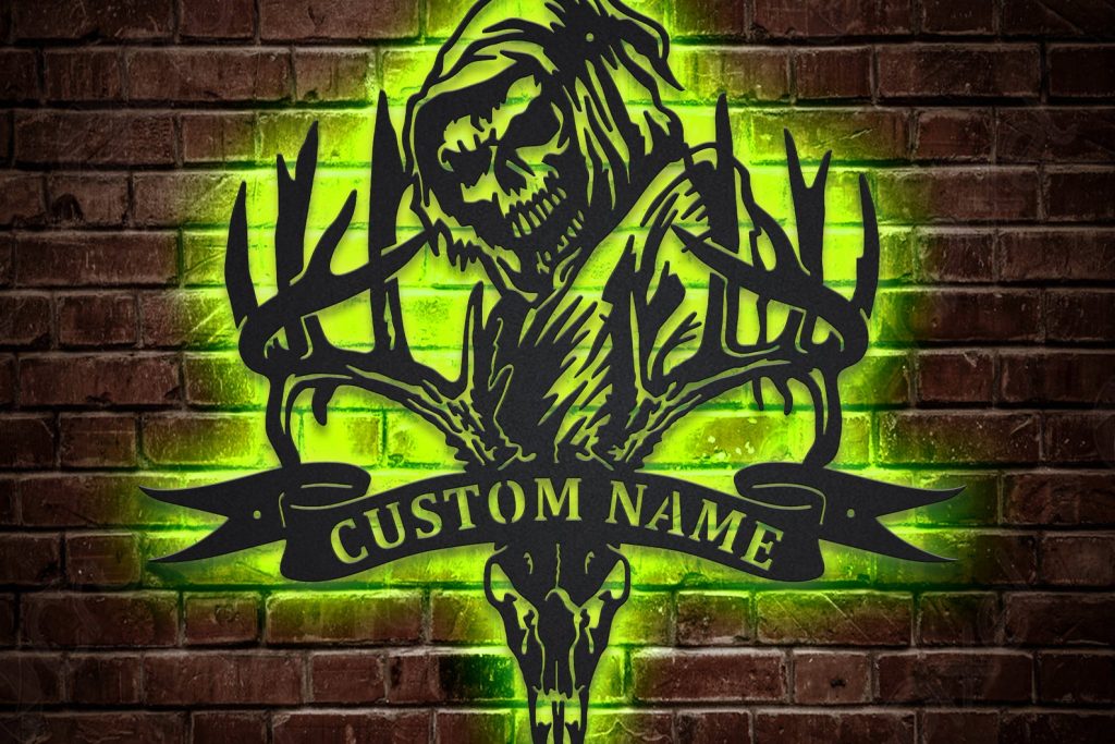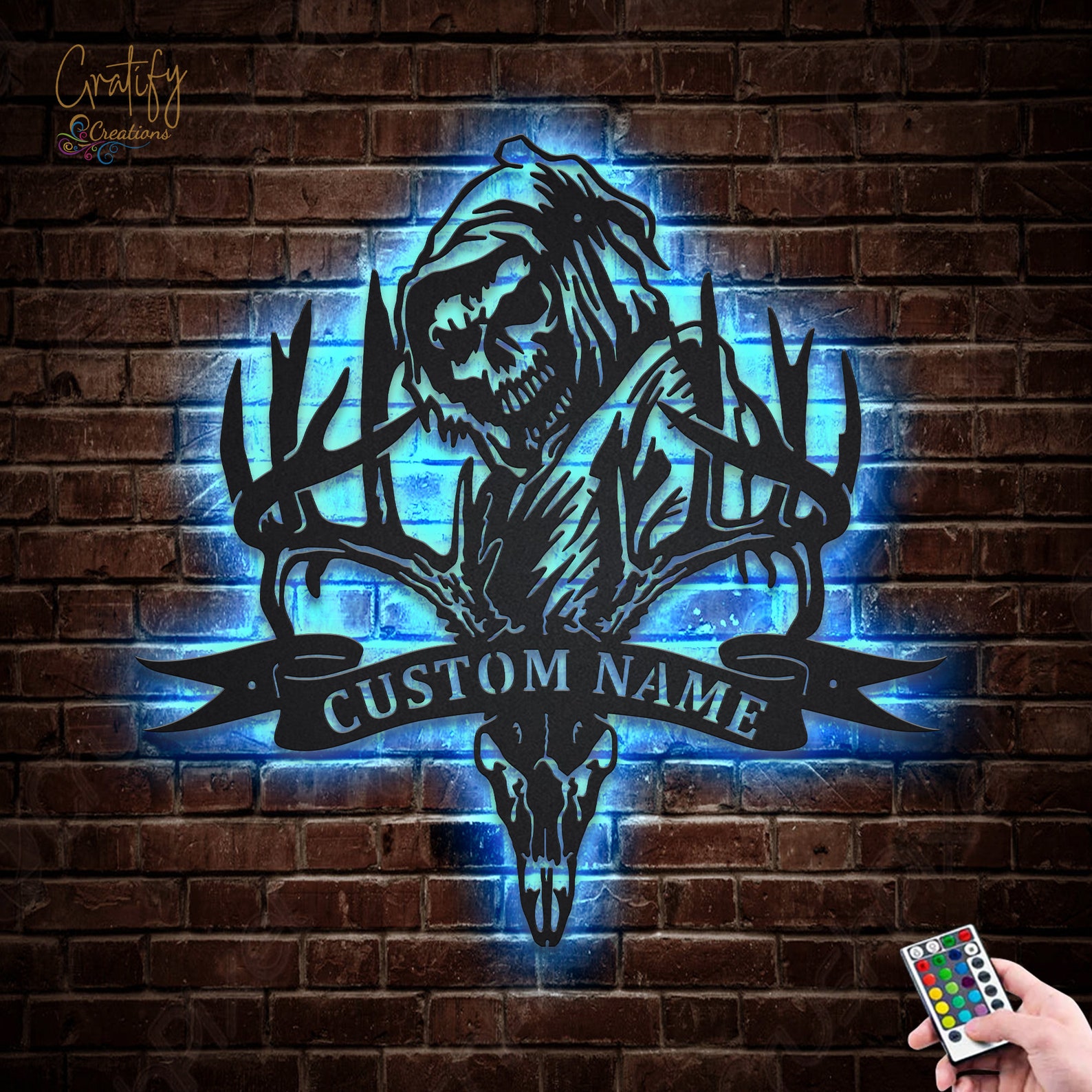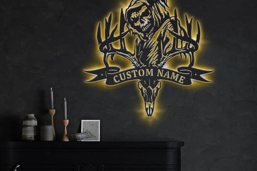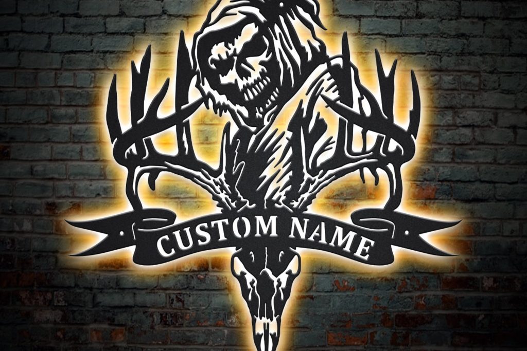 Be the first to review “Custom Deer Skull Metal Sign with LED – Hunting Gift”