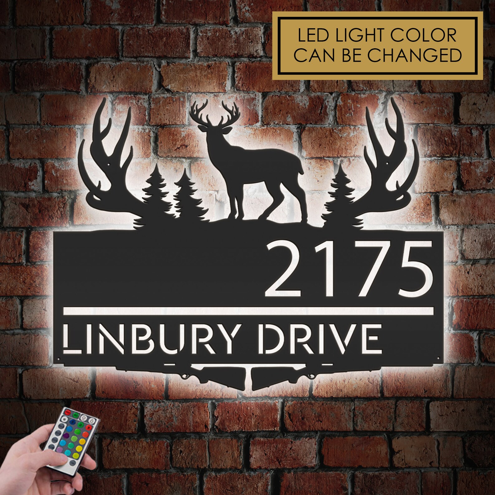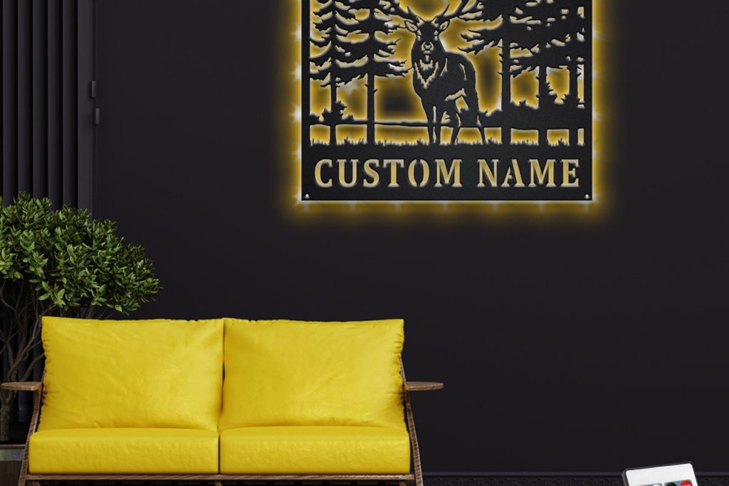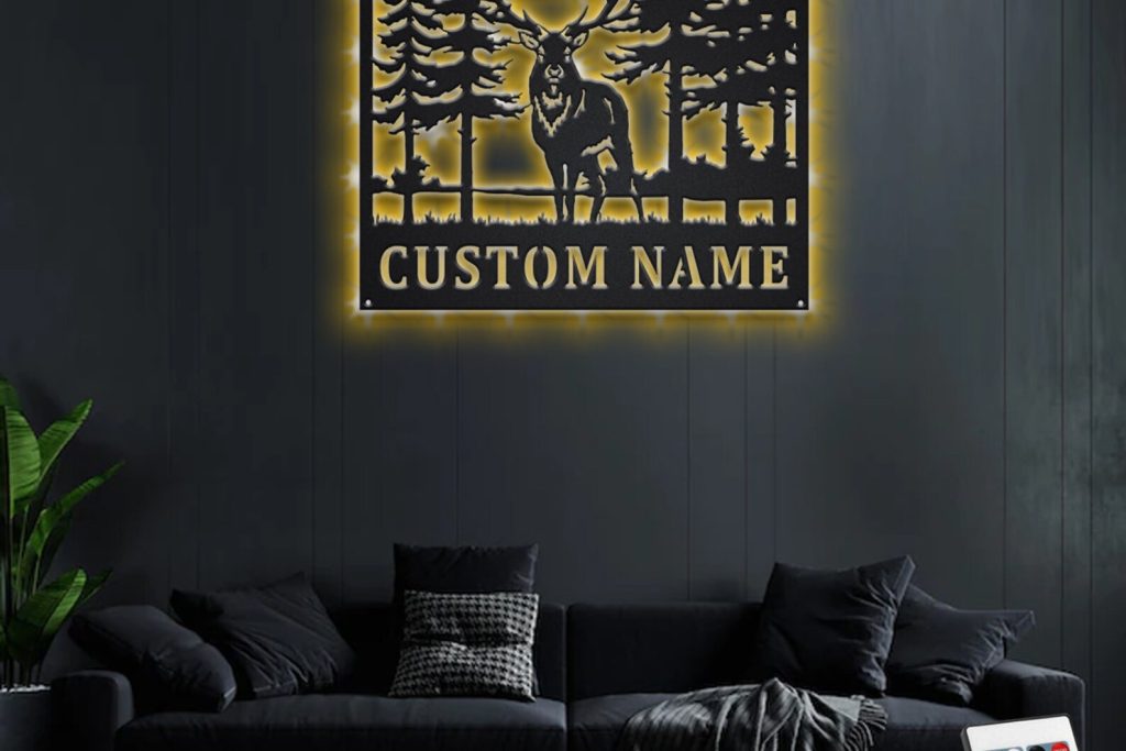 Custom Deer Wildlife Metal Sign with LED – Room Decor