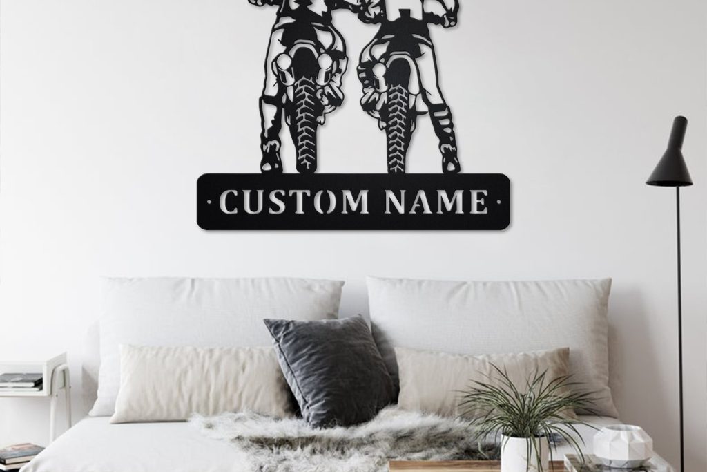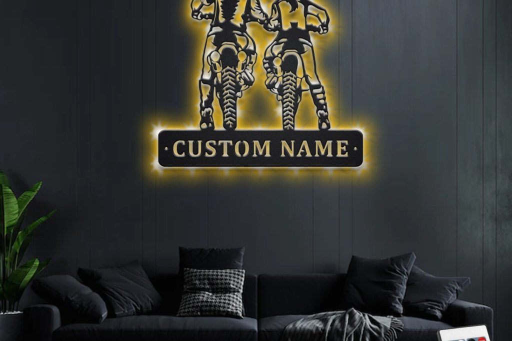 Custom Dirt Bike Couple Metal Sign with LED – Biker Room Decor