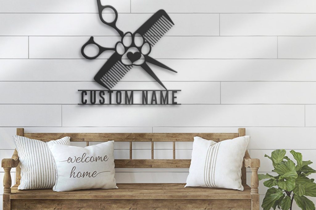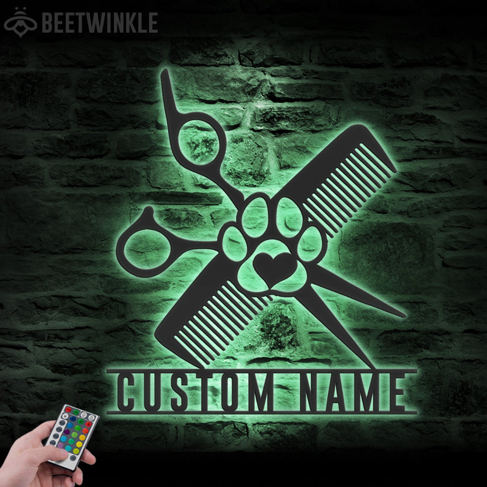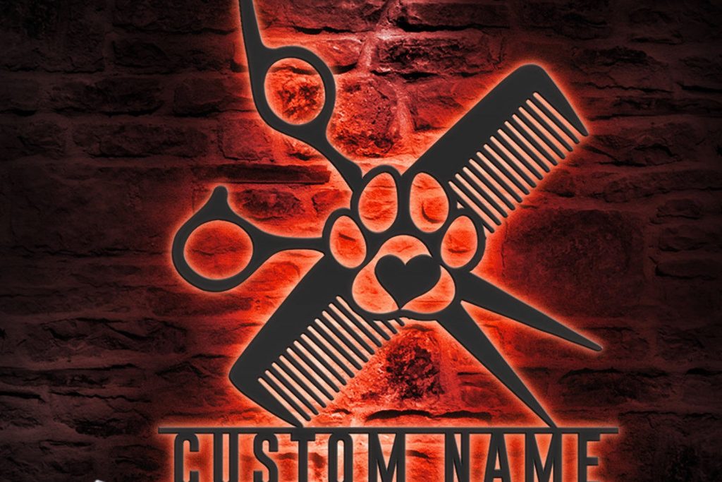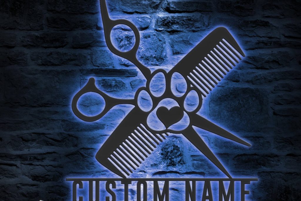 Be the first to review “Custom Dog Grooming Hair Salon Metal Wall Art – LED Light, Personalized Sign”