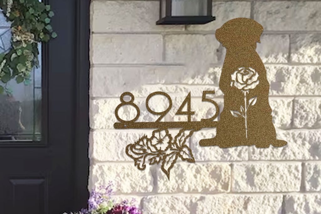 Custom Metal Pet Dog House Number Sign, Horizontal Metal Address Sign, Dog Address Sign, Outdoor Number Plate, Housewarming Gift.