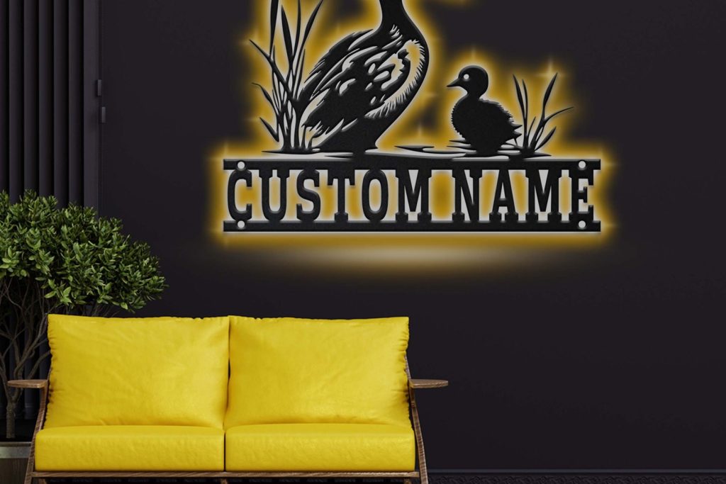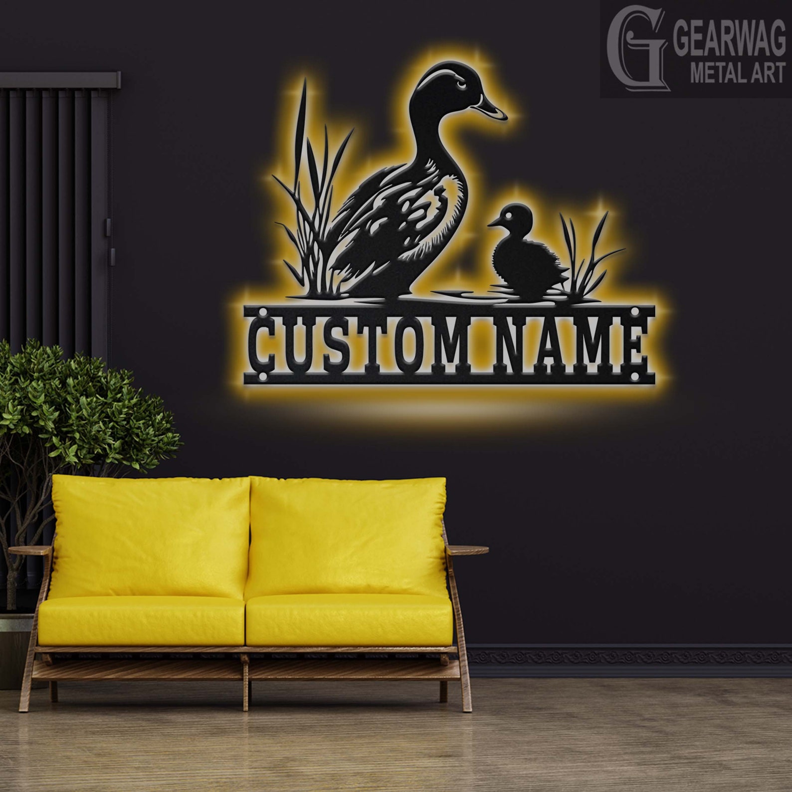Custom Duck Metal Sign with LED Light: Personalized Room Decor
