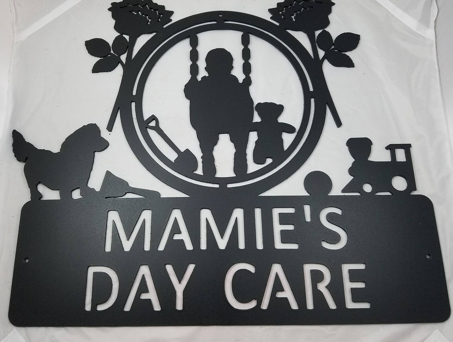 We professionally laser cut your sign with 16 gauge steel and your custom text, we then powderelectrostatic paint layer to ensure a smooth finish and long term durability.