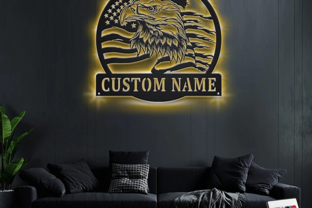 Be the first to review “Custom Eagle with Flag Metal Art with LED Light”