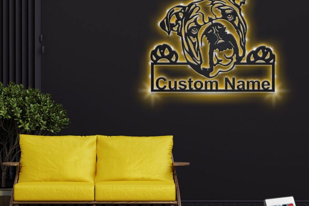 Custom English Bulldog Metal Sign with LED – Room Decor