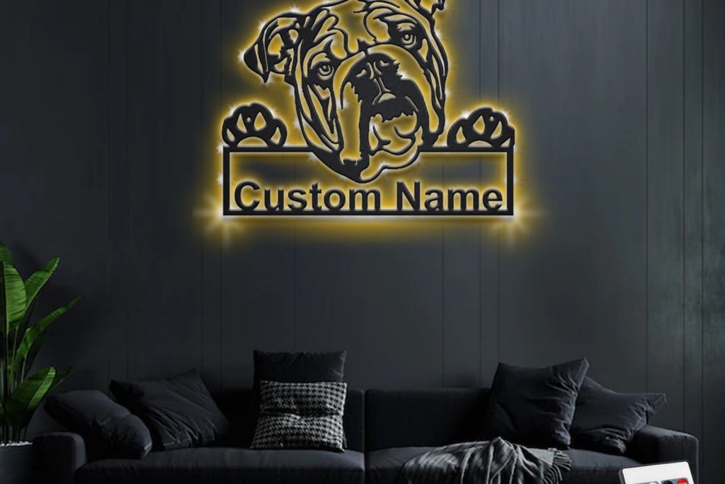 Be the first to review “Custom English Bulldog Metal Sign with LED – Room Decor”
