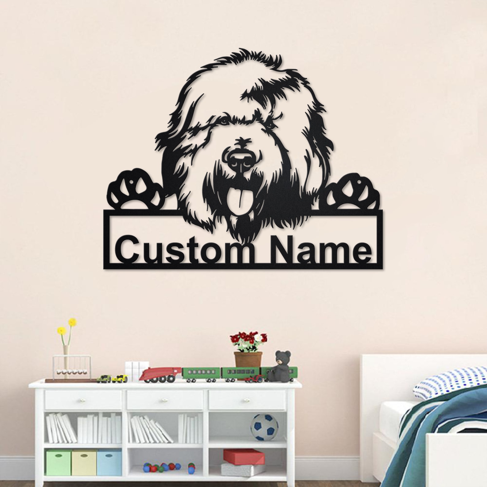 Custom English Sheepdog Metal Art – Personalized Pet Sign