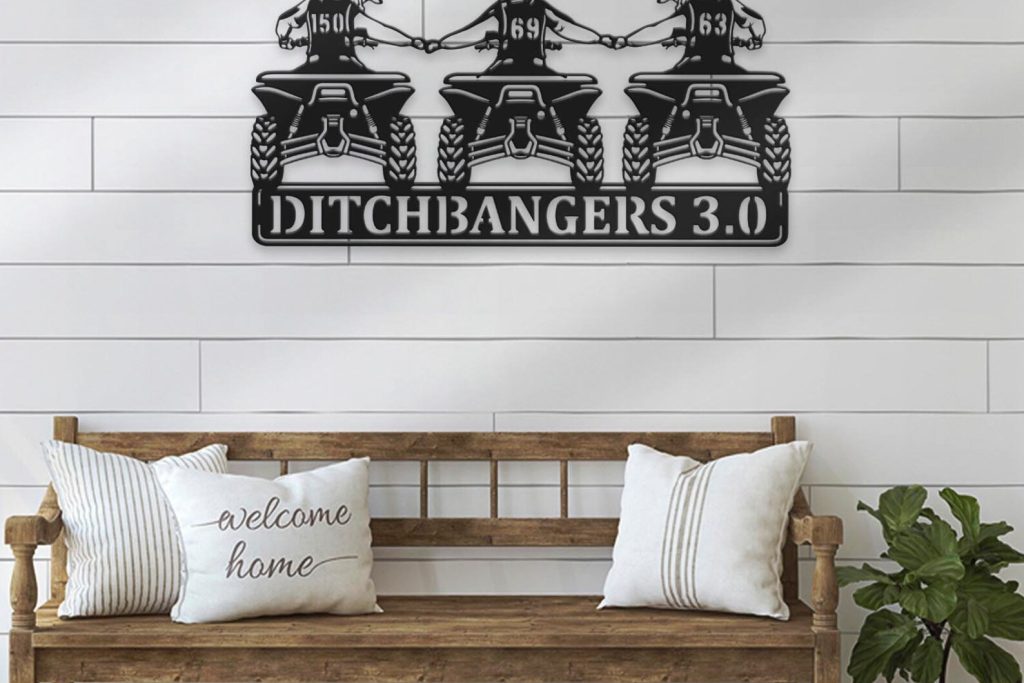 Custom Family ATV Quad Motocross Biker Metal Wall Art – LED Light, Personalized Sign