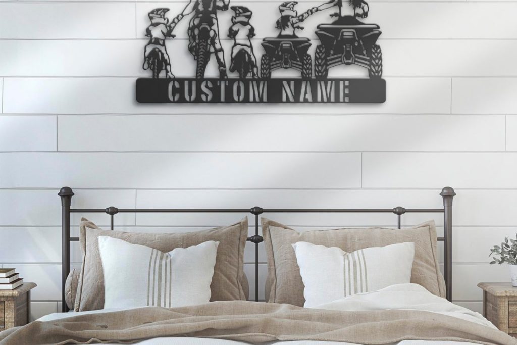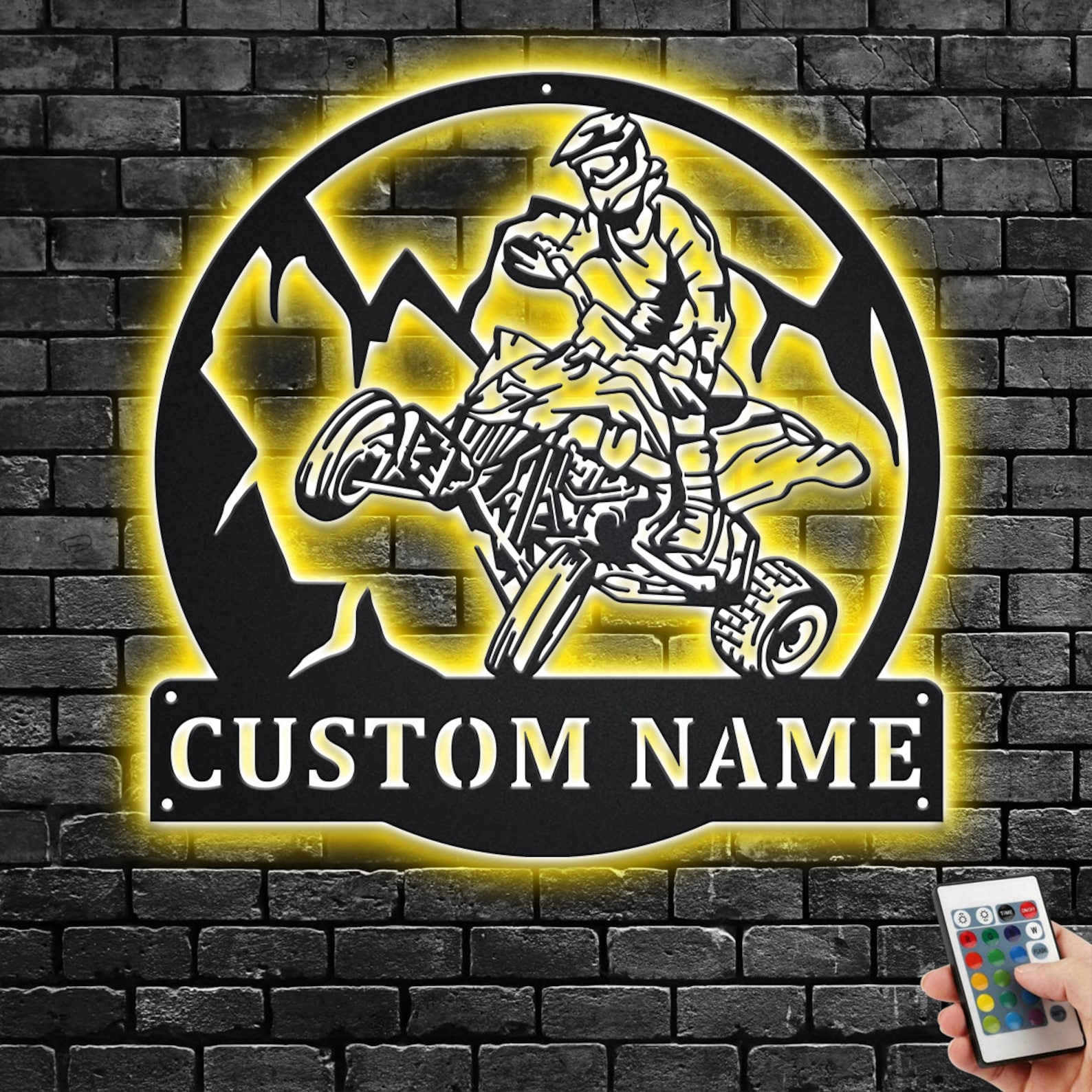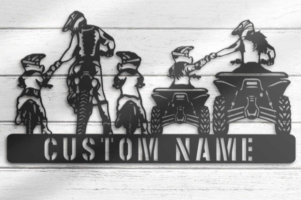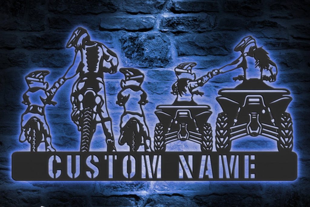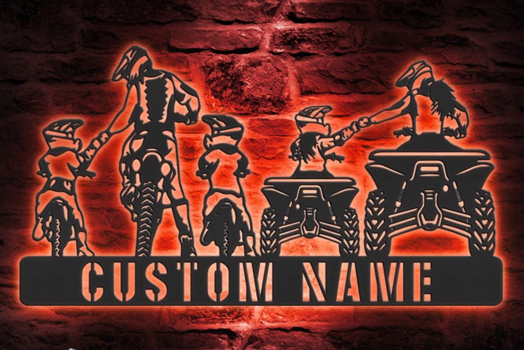 Custom Family ATV Quad Motocross Biker Metal Wall Art – LED Light, Personalized Sign