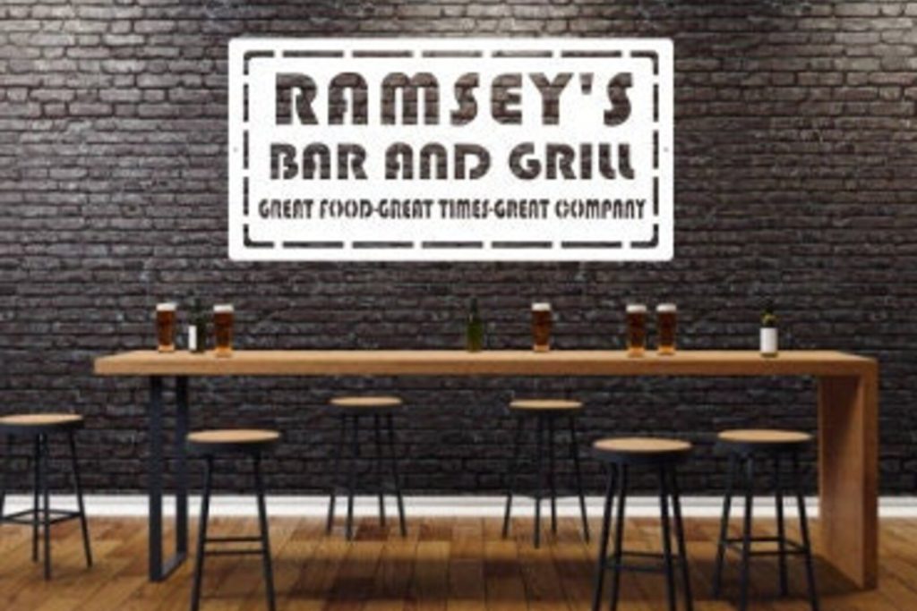 Personalized Metal Family Bar and Grill Restaurant Or Business Sign! Add 3 lines of your own text and have it cut out of metal! Made out of 14 gauge American made and bought steel. Integrated mounting holes for easy installation. Each sign is painted with industrial paint for use indoors or outdoors! Custom Orders Are Welcome! If You Have Any Questions Please Message Us! We Are family owned business who enjoy bringing you the best service and quality around! If you Have Special Instructions or designs send us a message and we will love to work with you side by side to design your sign. Discounts on multiple orders! ships within 3 days even though its custom to order! There is a lot of options to get metal art out there, But if you give us the chance to make yours we will NOT disappoint! Thank You For Looking!