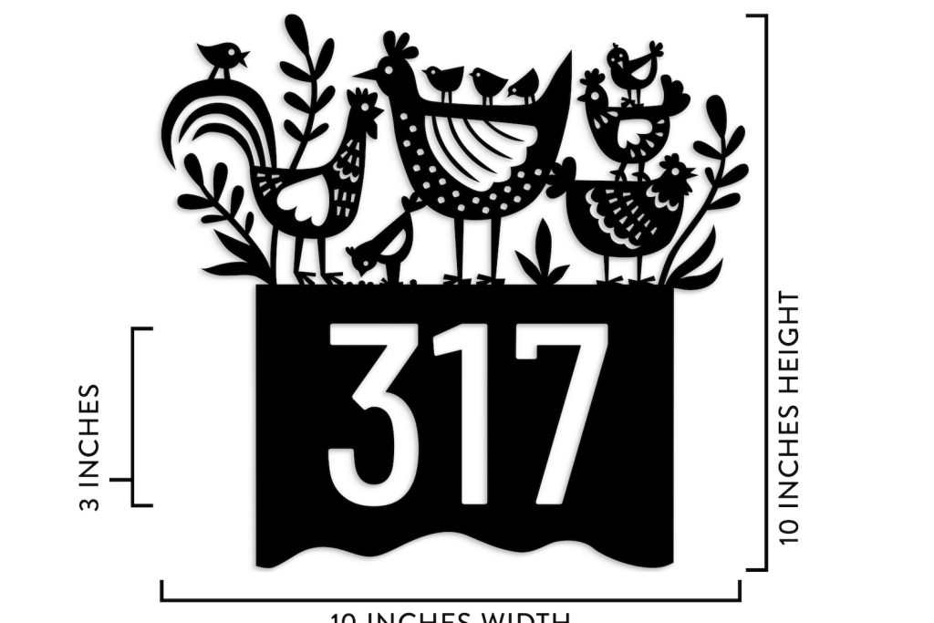 Our Custom Metal Farm House Chicken themed personalized number sign brings whimsy and character to your home. A great gift for a housewarming, wedding, birthday, anniversary, or any occasion. If you want to add your name, please contact us for a price quote.