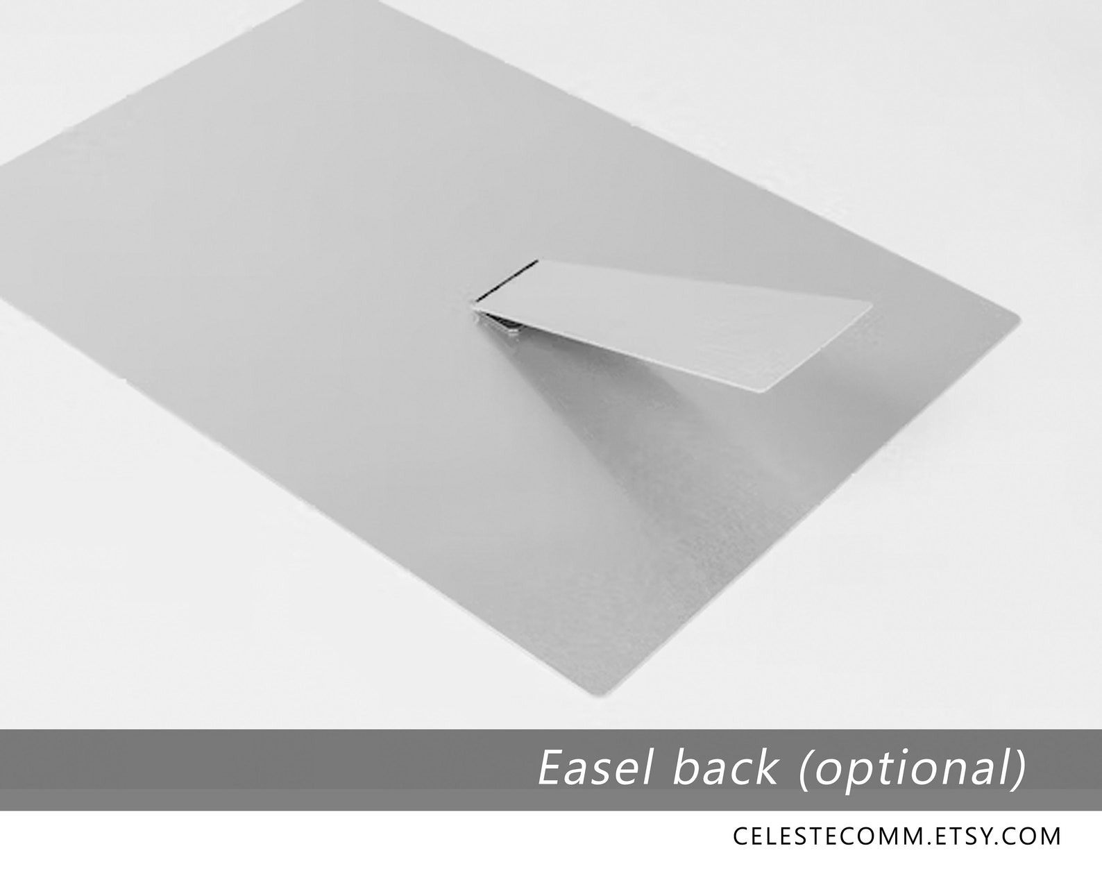 – Signs do NOT come with corner holes for wall hanging. Celeste Communications recommends purchasing the easel option for shelf display (an additional charge applies).