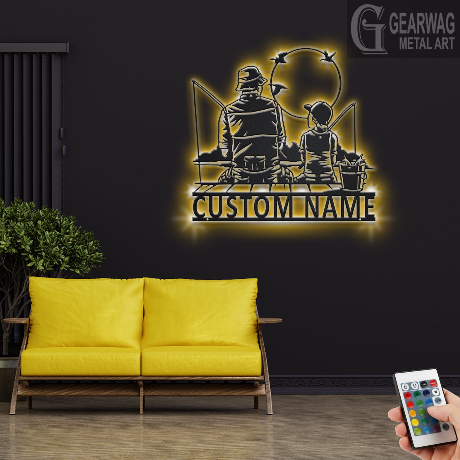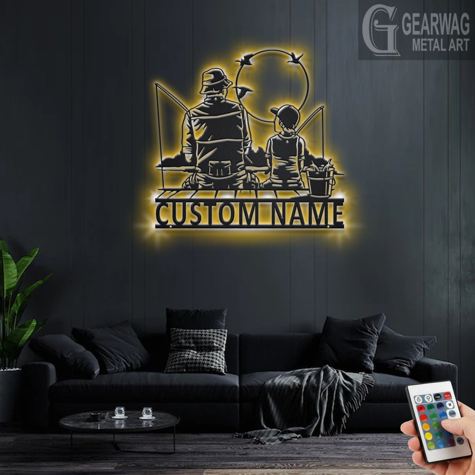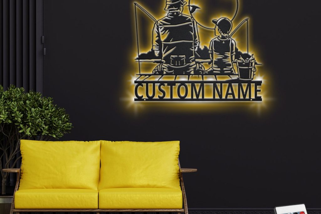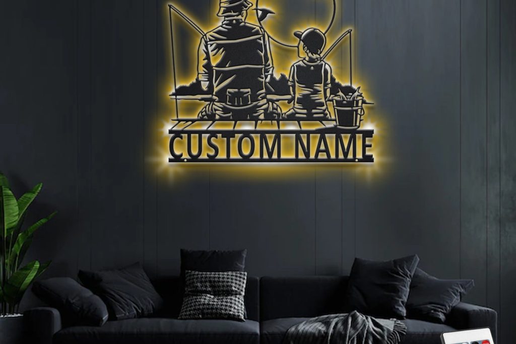 Be the first to review “Custom Father and Son Fishing Metal Wall Art with LED Light”