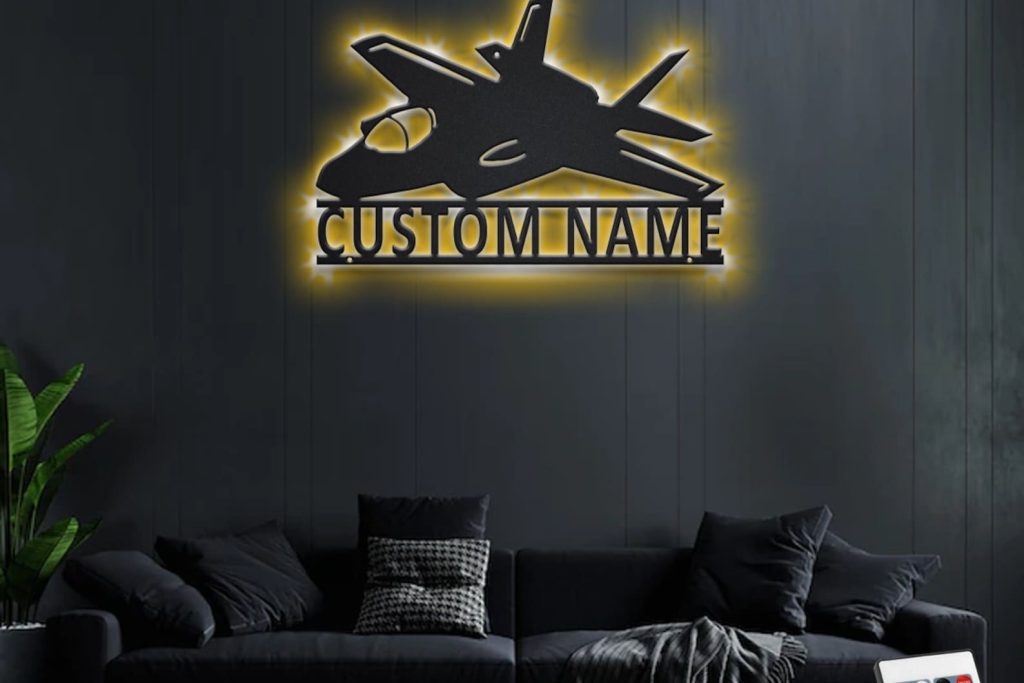 Custom Fighter Aircraft Metal Wall Art with LED Light